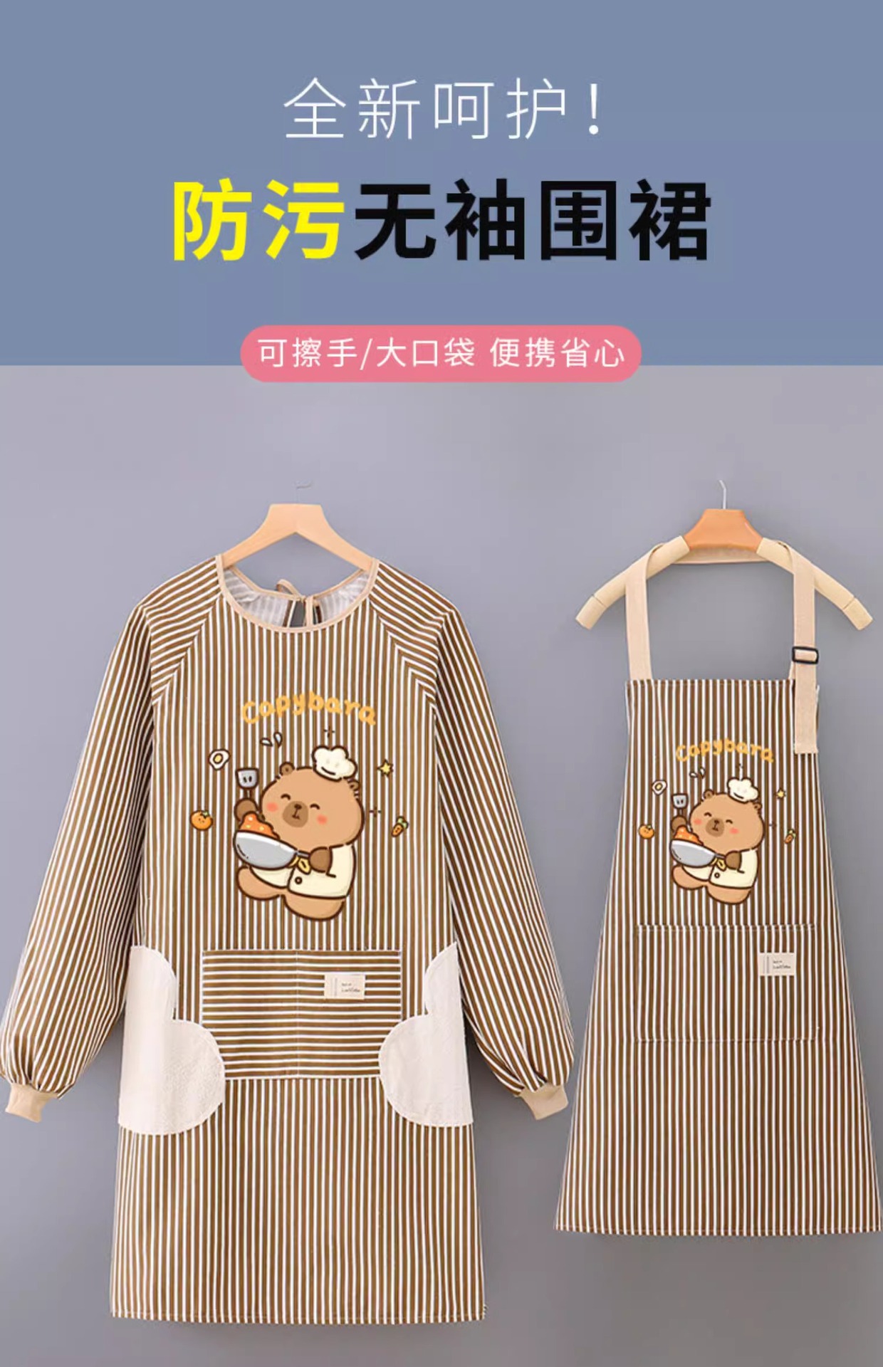 防污透气长袖围裙家用厨房成人做饭耐脏罩衣女外穿工作服餐饮上班
