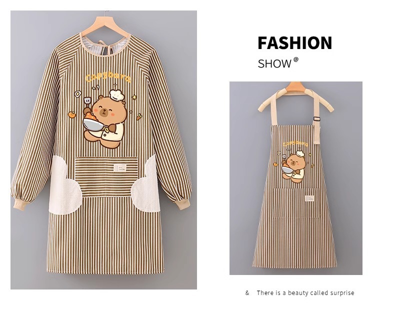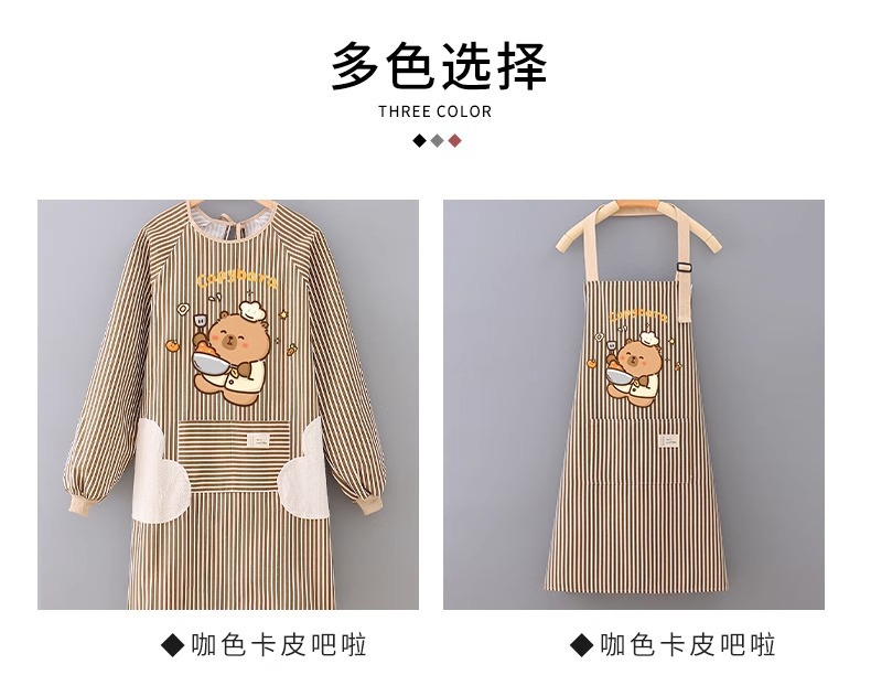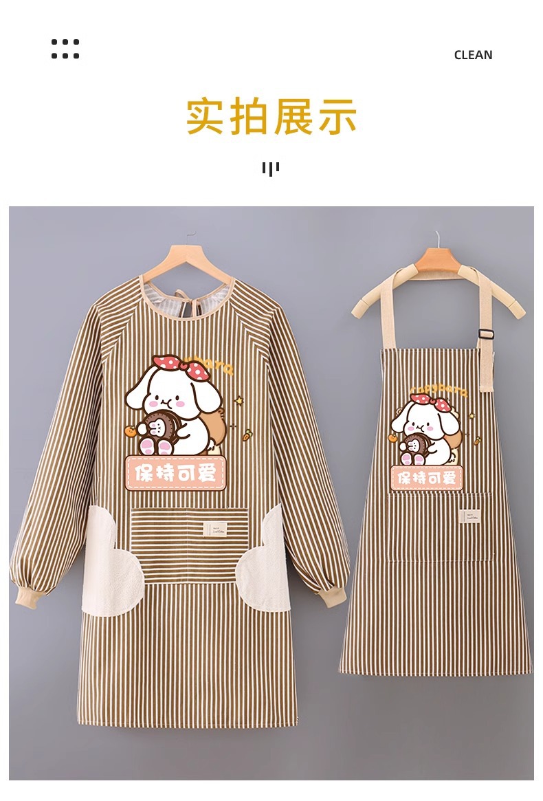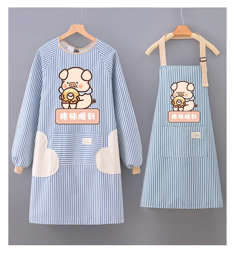アニメ防水防油長袖カバーエプロンキッチン家庭用かわいい料理ウエスト女性飲食作業服印字