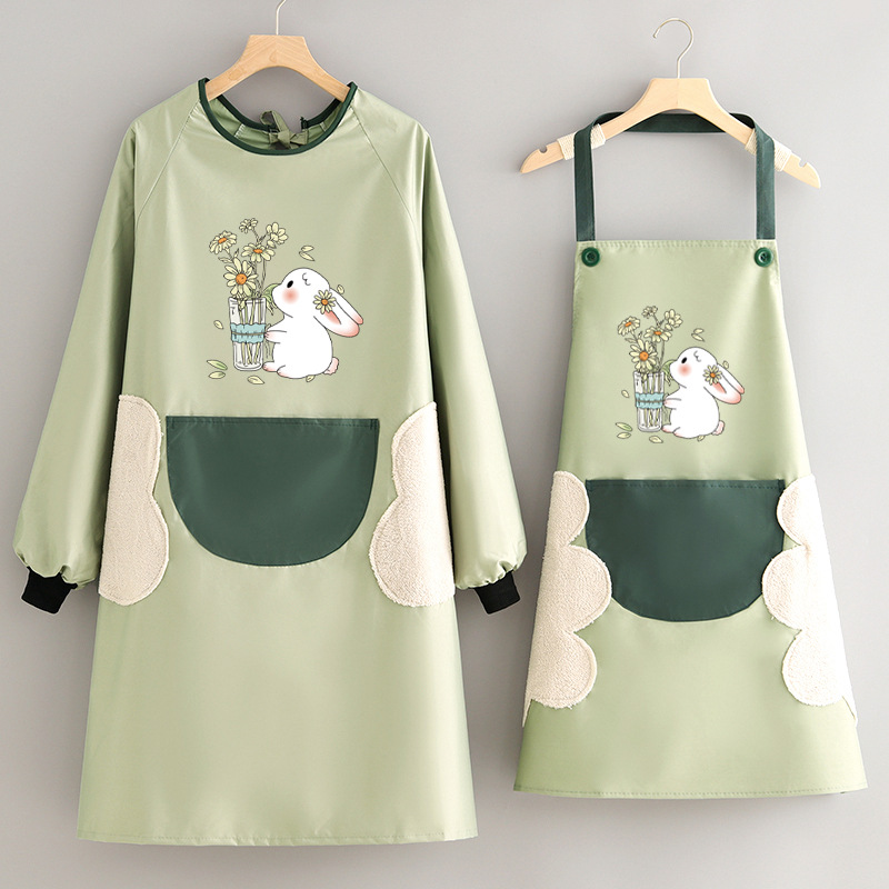 エプロン家庭用キッチン逆着カバー防水防油長袖大人女性かわいい日系韓国版ファッション料理