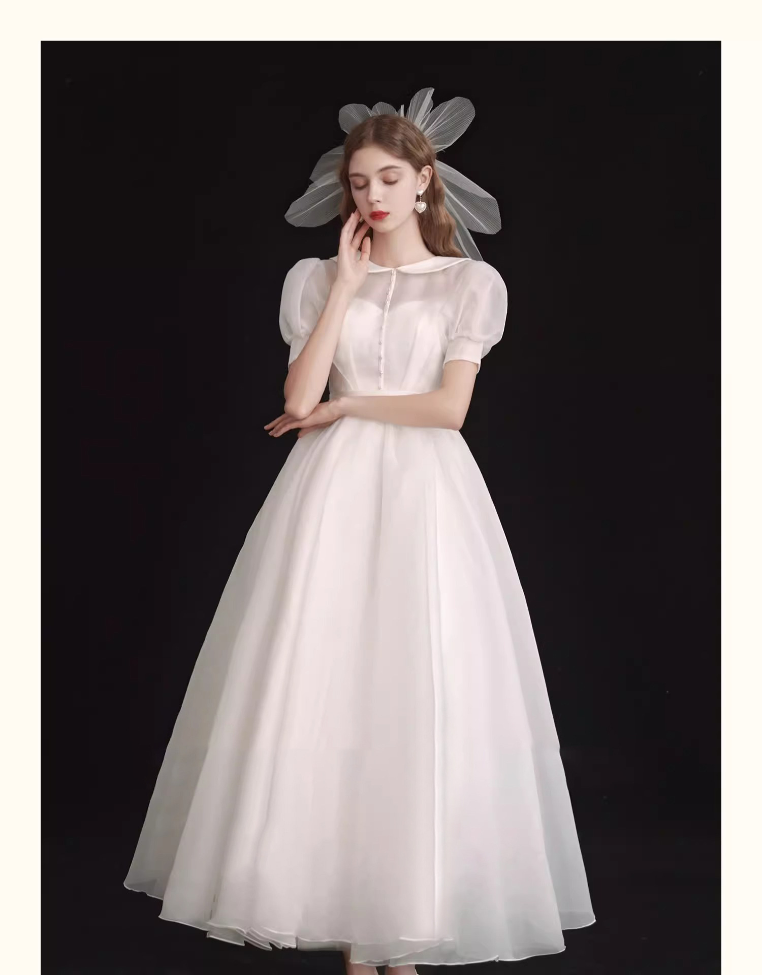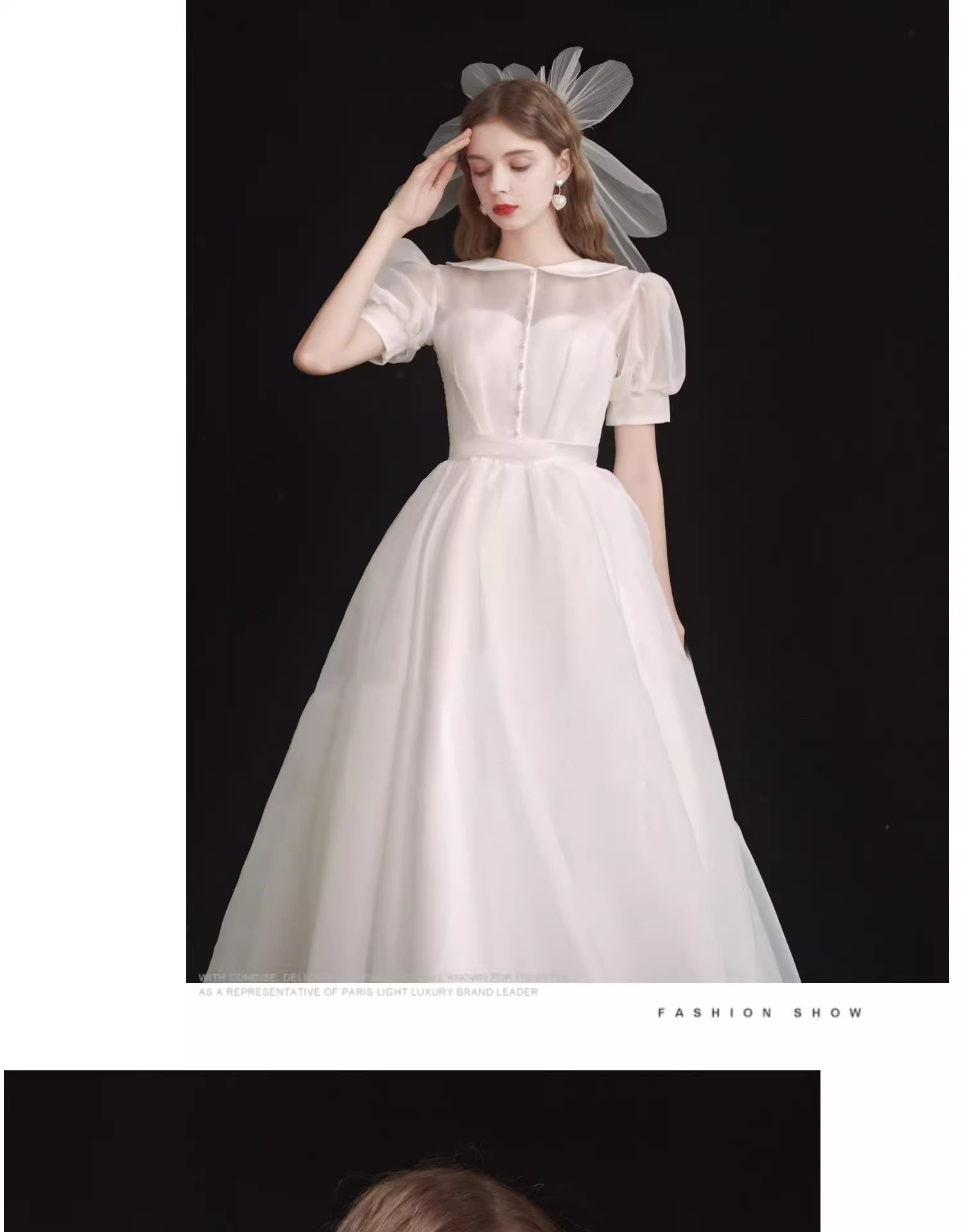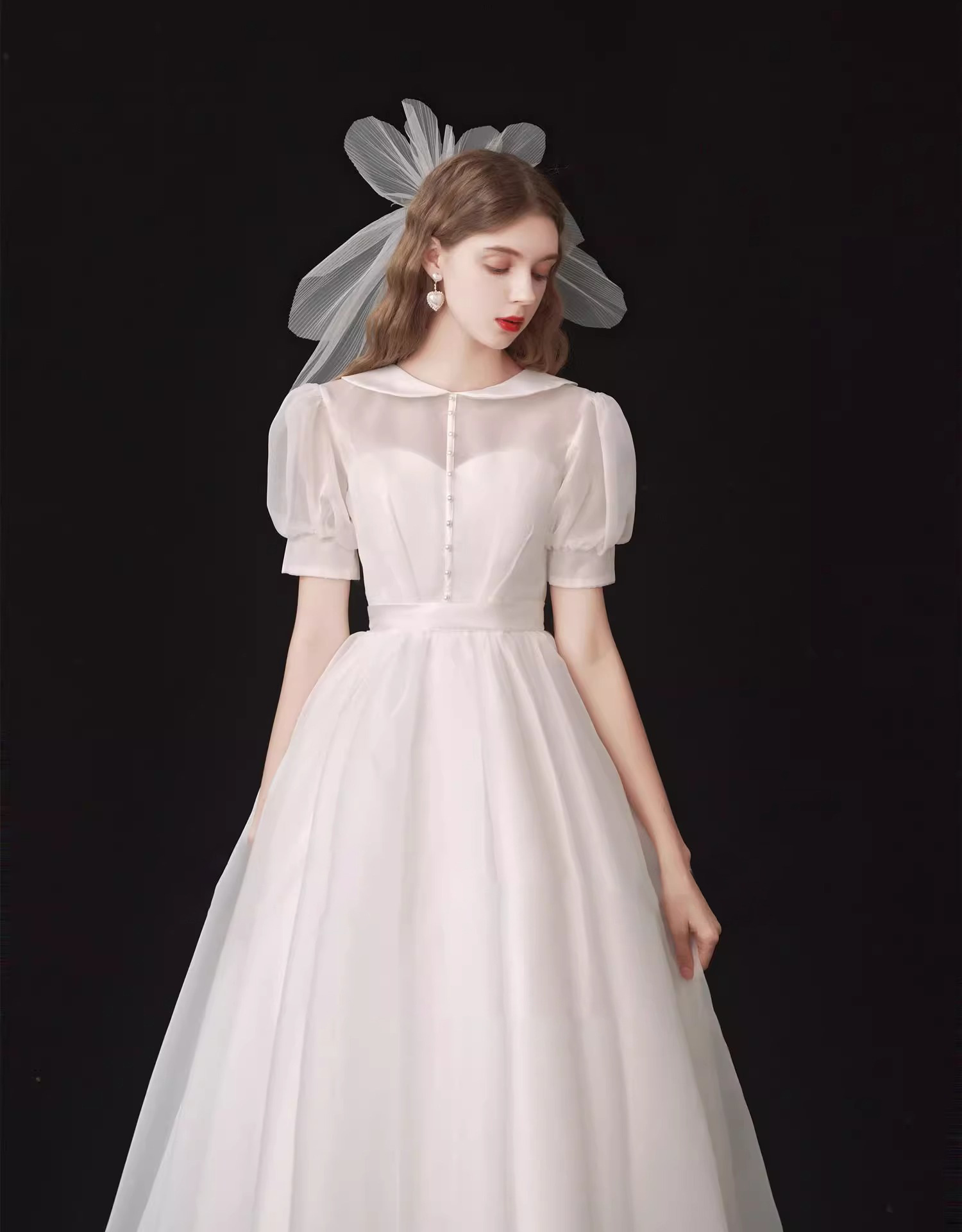 ライトウエディングドレス2025新作新婦泡袖白色シンプル気質方襟登録ドレス