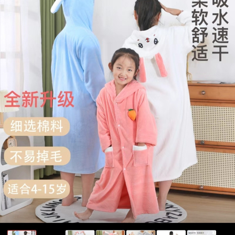 ボタンを押して毅然とした可愛い刺繍と帽子の長袖の浴衣の子供の浴衣の中の大きい子供の寝服のウサギの浴衣の1条