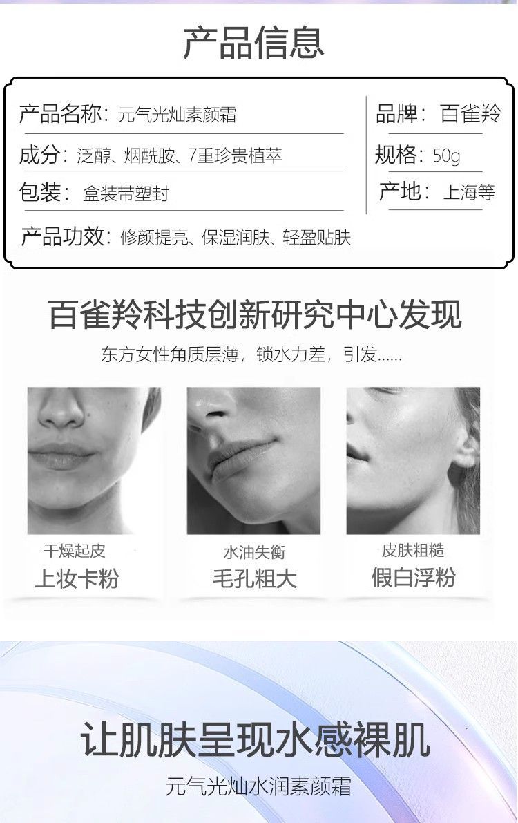 百雀ガゼル元気光燦水潤素顔クリーム50g水潤が肌の色を明るくして保湿します。