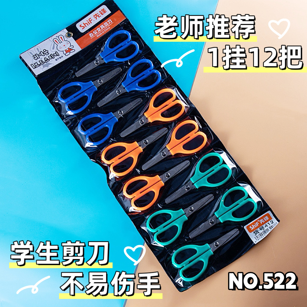 先駆者522学生ハサミ手作り小型学生用ハサミかわいいプラスチック柄の丸い頭が傷つきにくい