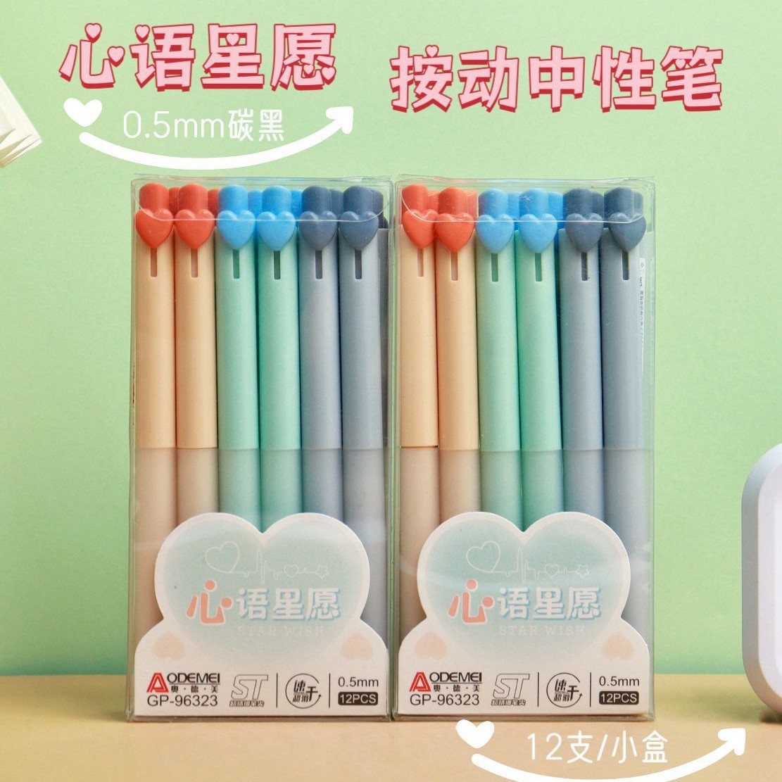 奥德美心语星愿按动中性笔学生高颜值ST头速干刷题笔爱心黑色水笔