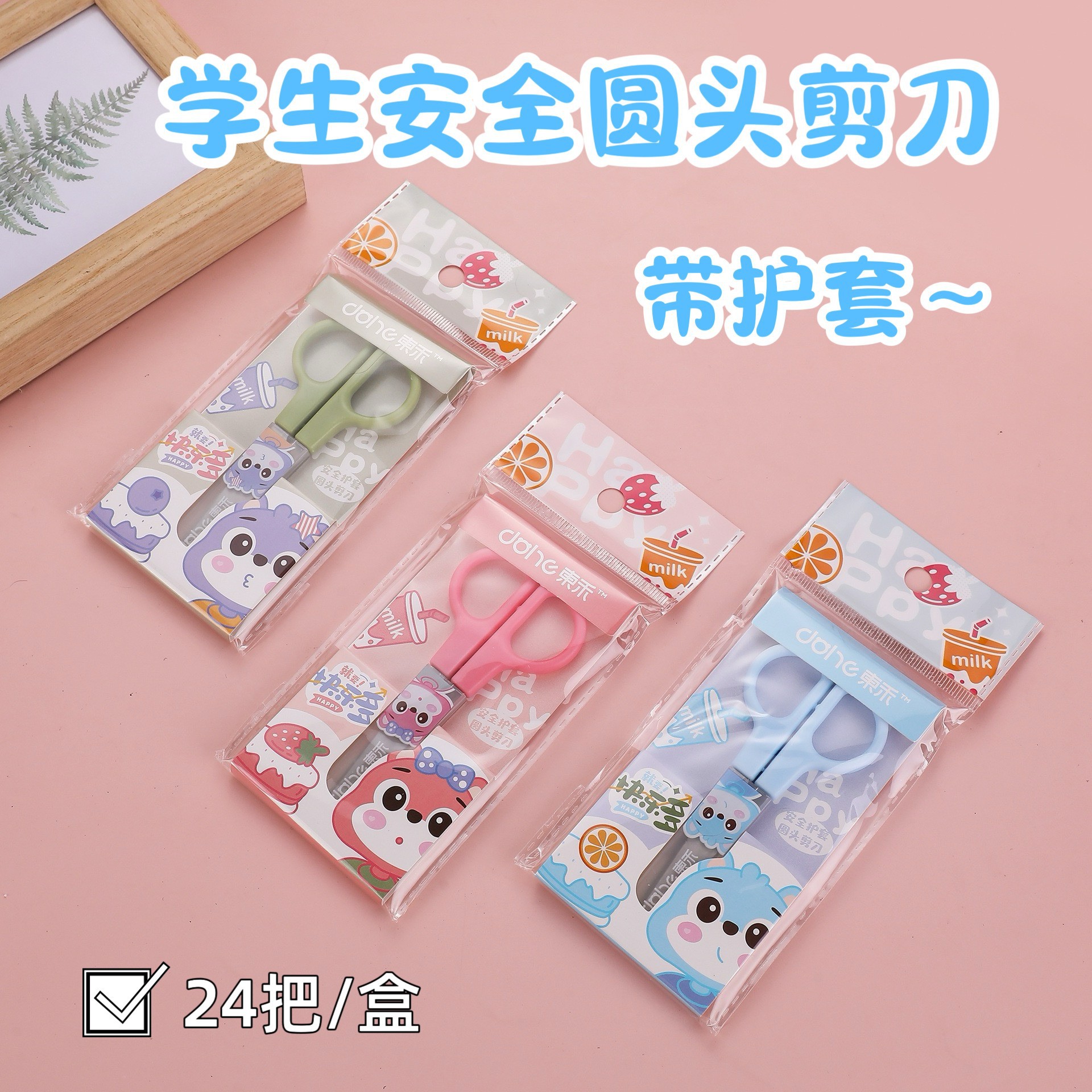 先锋学生护套圆头剪刀马卡龙安全美工文具儿童办公手工剪刀带盖