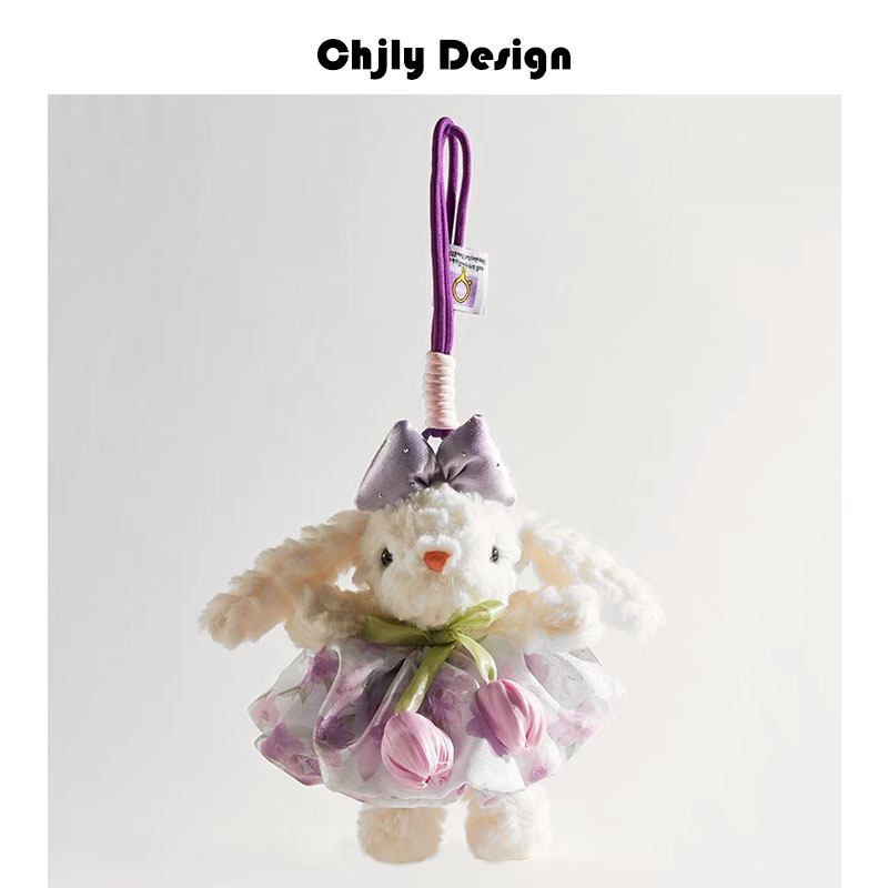 かわいいチューリップガーゼスカート、長い耳のウサギのバッグペンダント、高級ぬいぐるみペンダントキーホルダー、親友ギフト
