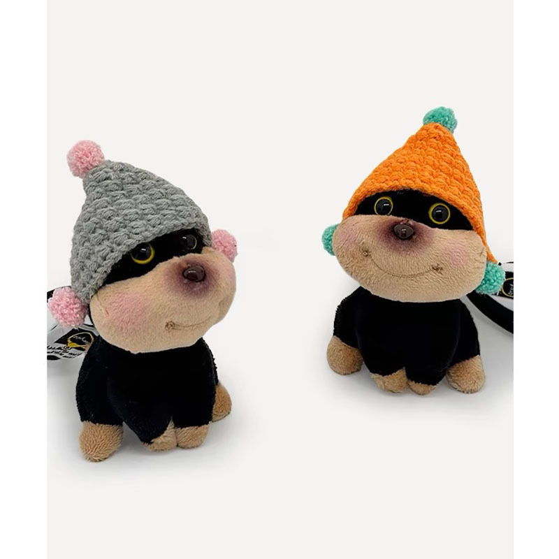 帽子ハチの子犬のカバンのぬいぐるみのストラップのカバンのストラップのカバンのストラップの装飾のカップルはキーボタンの人形をいじります。