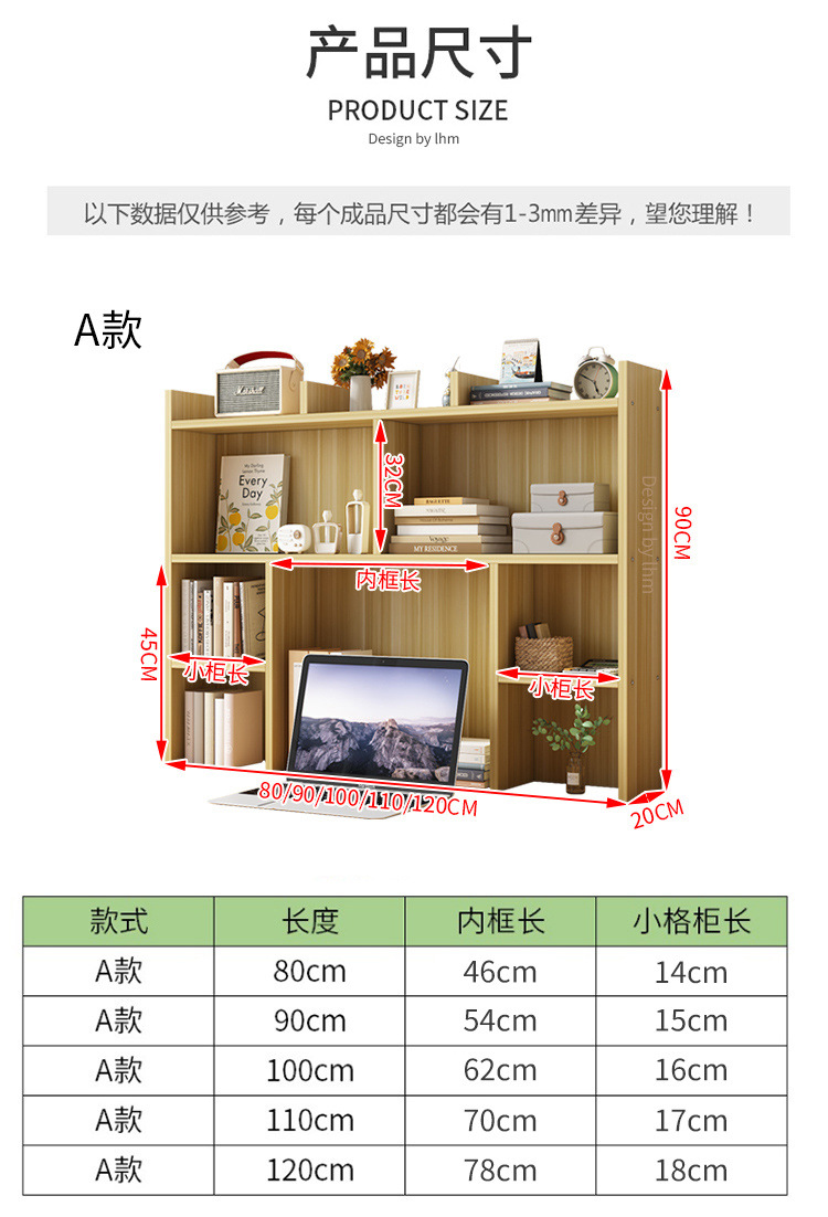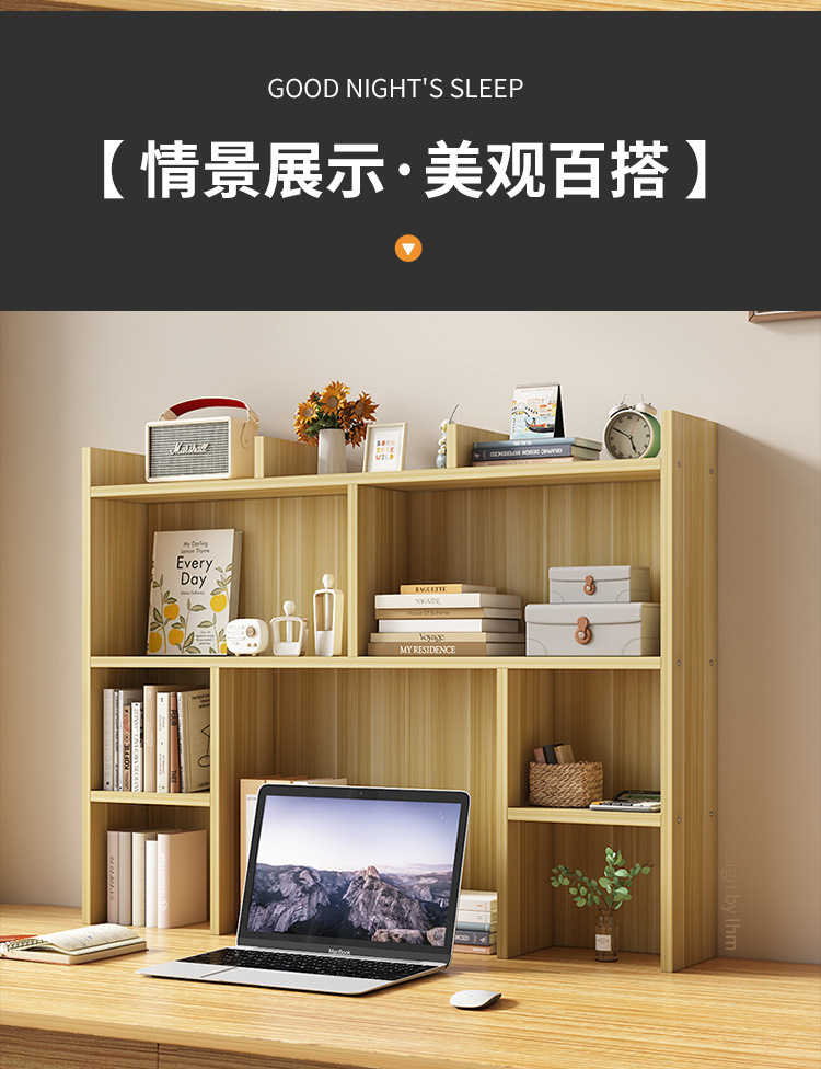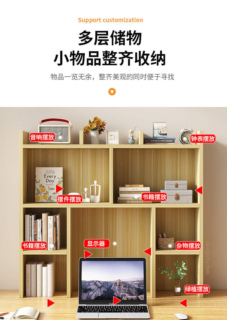 机の上の本棚のデスクトップのデスクトップのコンピュータの置物のテーブルの収納棚の机の事務の大学生の寮の卸売り