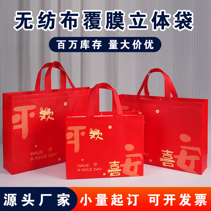 赤いハッピーワード不織布福袋誕生日ギフトハンドバッグ厚みのあるハンドバッグギフトバッグハンドバッグ在庫あり