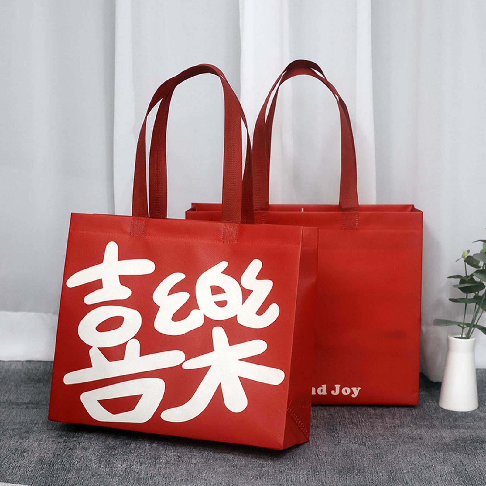 不織布ギフトバッグ、お祝い用既製品、喜字入り赤色結婚式のお返しバッグ、寿字入り誕生日バッグ、ロゴ印刷可能、メーカー直販