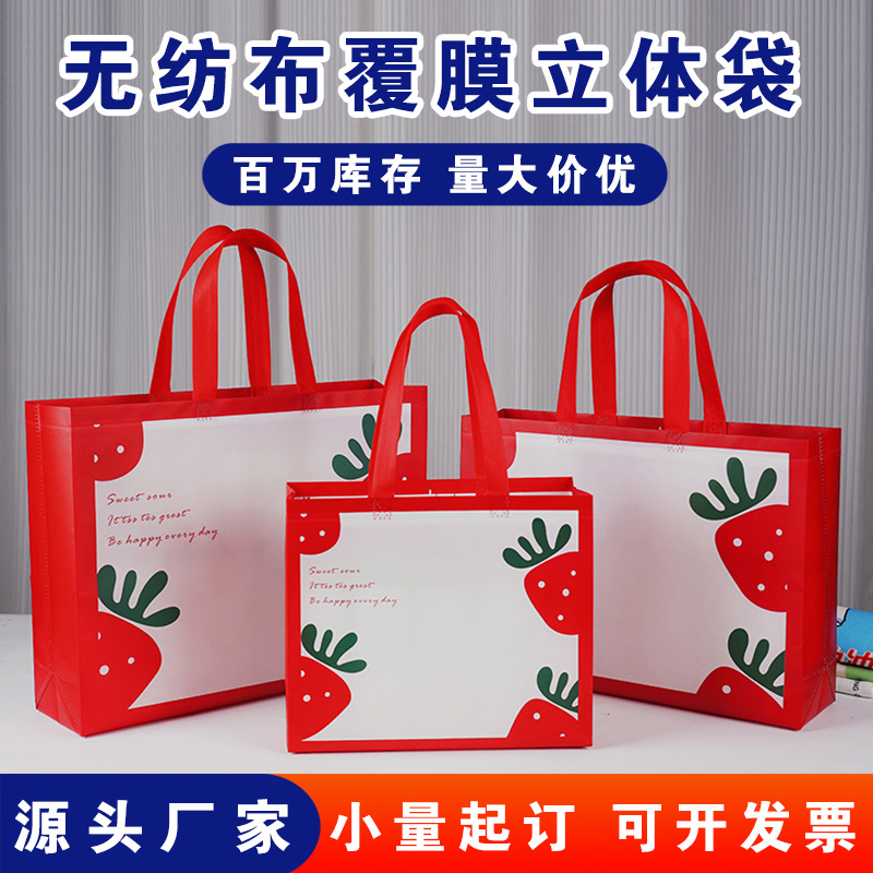 新しい赤いイチゴ不織布ハンドバッグ子供服ショッピングバッグフルーツテイクアウトギフトバッグ卸売ロゴ