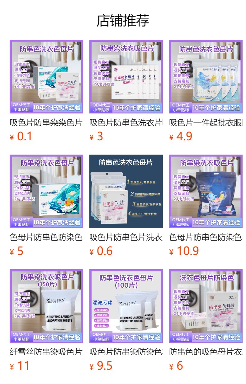 特価カラーシート洗濯防止カラー家庭用衣類染色防止カラー混洗紙家庭用カラーマザーシート工場
