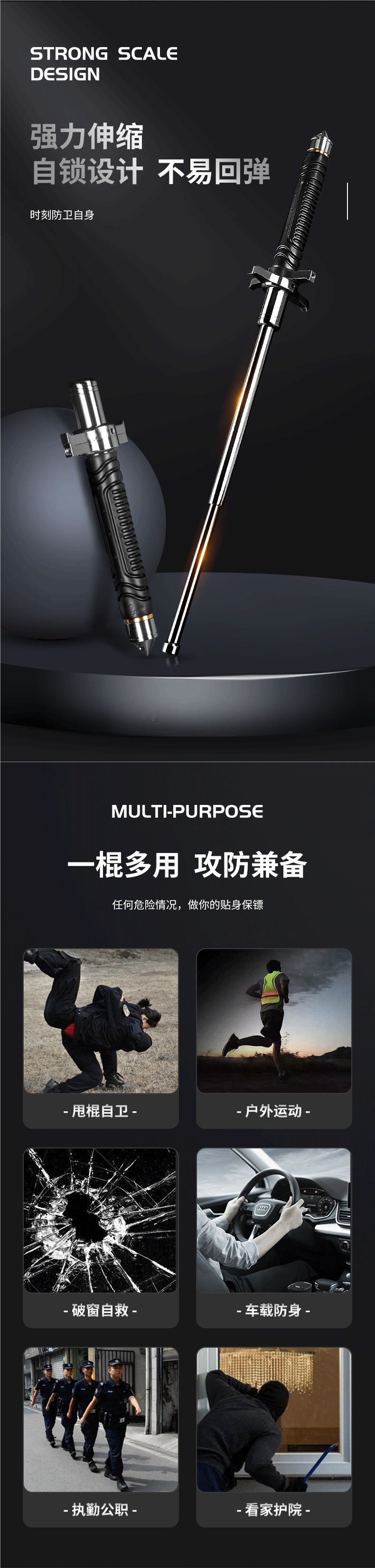 中実は太くて刀を遮って棒を投げて身を守る合法的な武器のローラーの伸縮防止の棒の車載の3節の防狼の自衛用を防ぎます。
