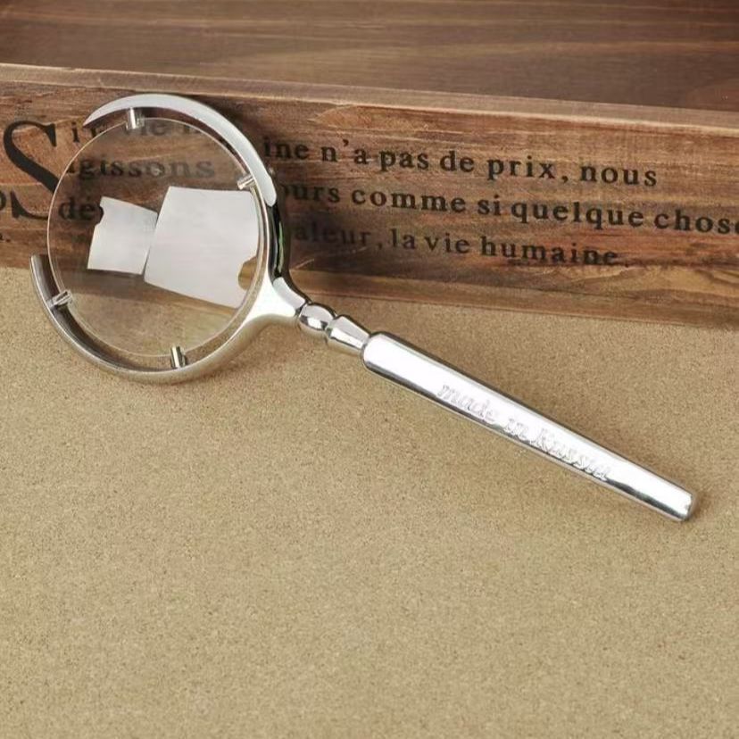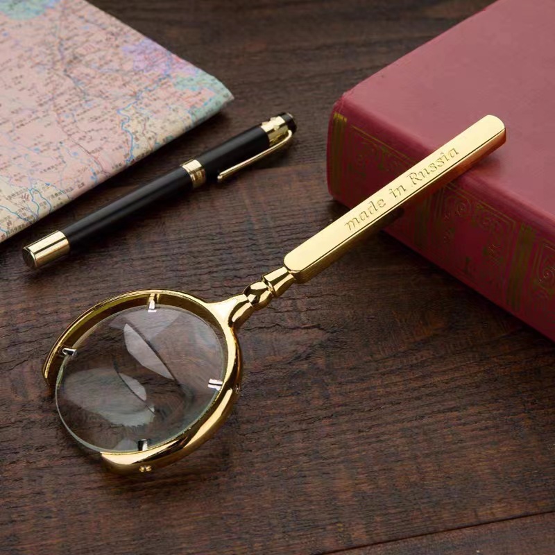ロシア製 アンティーク調 全金属製 開口月牙型 高精細 手持ち式 読書 考古学 学習 新聞閲覧 拡大鏡