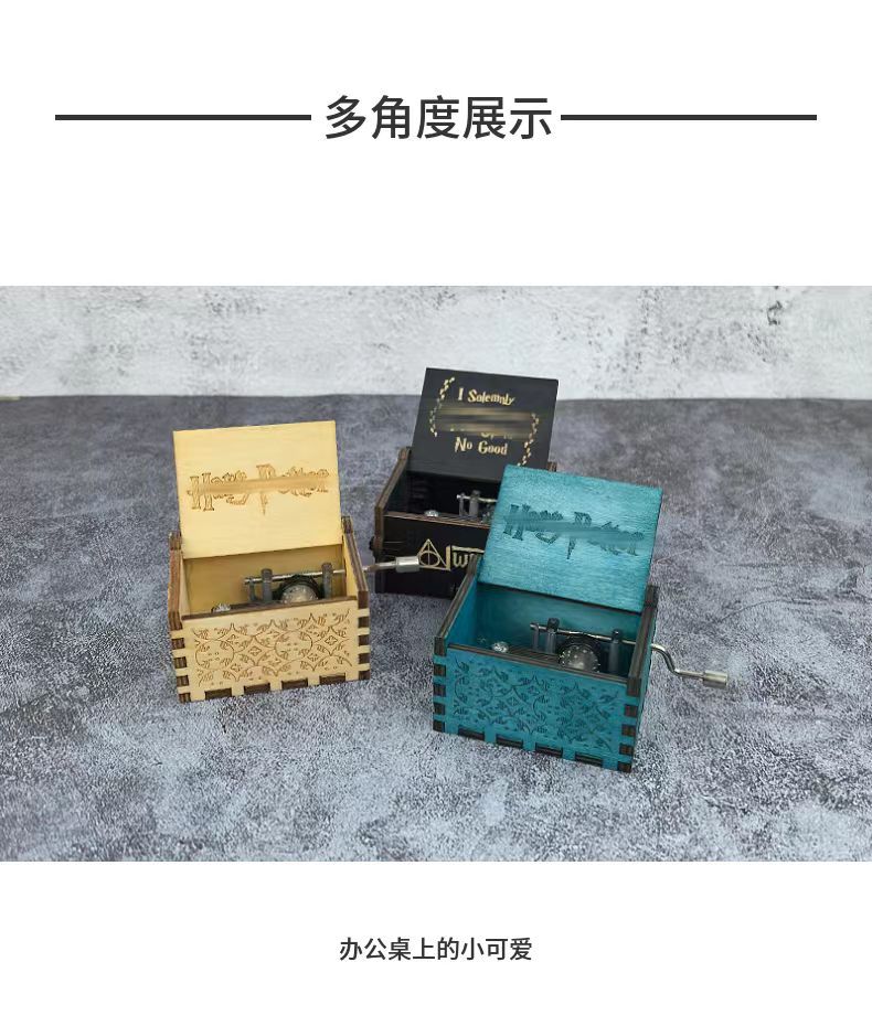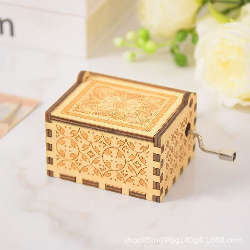 现货批发手摇木制八音盒激光雕刻精美彩绘音乐盒节日礼物礼品摆件