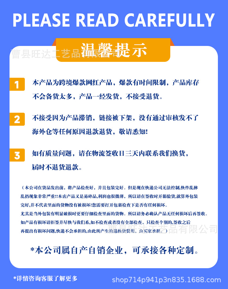 1688.comは中国で生産され、流通している商品を扱うBtoB卸サイトとなります。お客様が弊社サイト内にて仕入処理をされても、日本国内の法律に則り、日本への輸入ができない商材もあり、その場合弊社でも仕入れの手配が出来ません。その際はシステム上で、自動的に注文削除となってしまう事を、恐れ入りますがご了承願います。