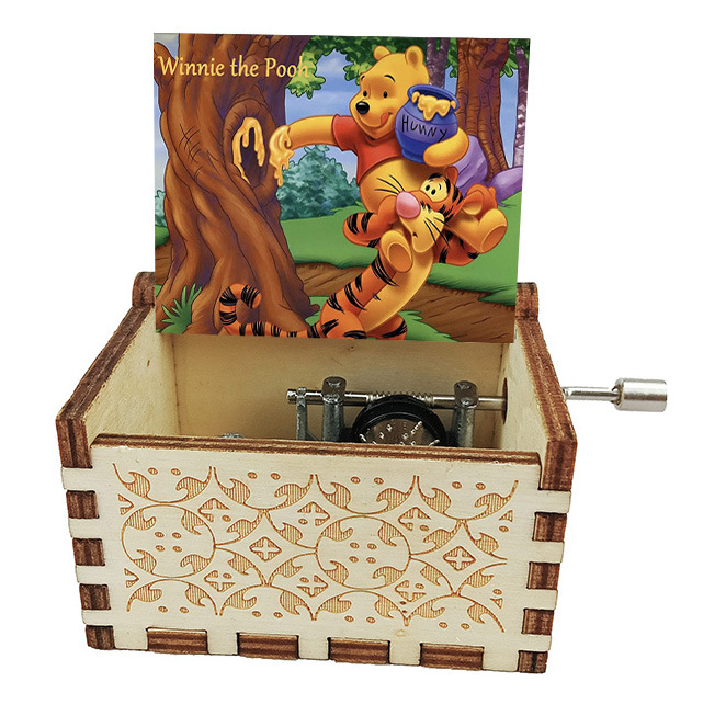 現物速発小熊維尼オルゴール彫刻ミニオルゴール彩色絵手回し木製八音ギフトボックス誕生日