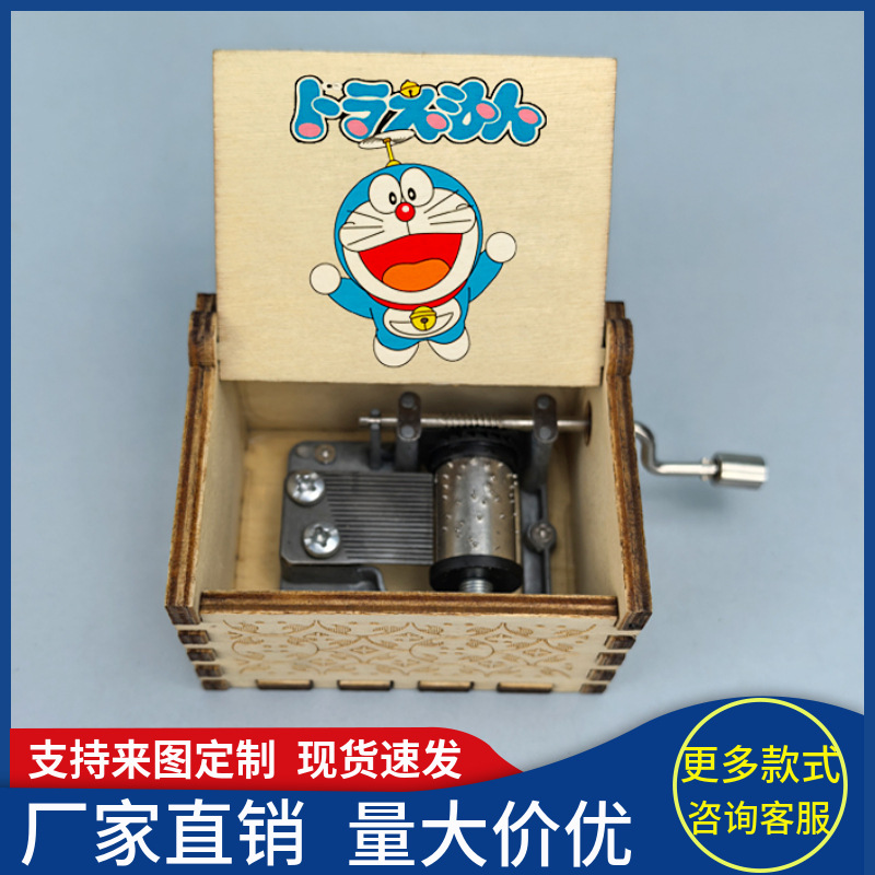 源メーカーの国境を越えたソースの木製手が音楽箱のレトロな彫刻を振って、ドラえもんのオルゴールを飾っています。