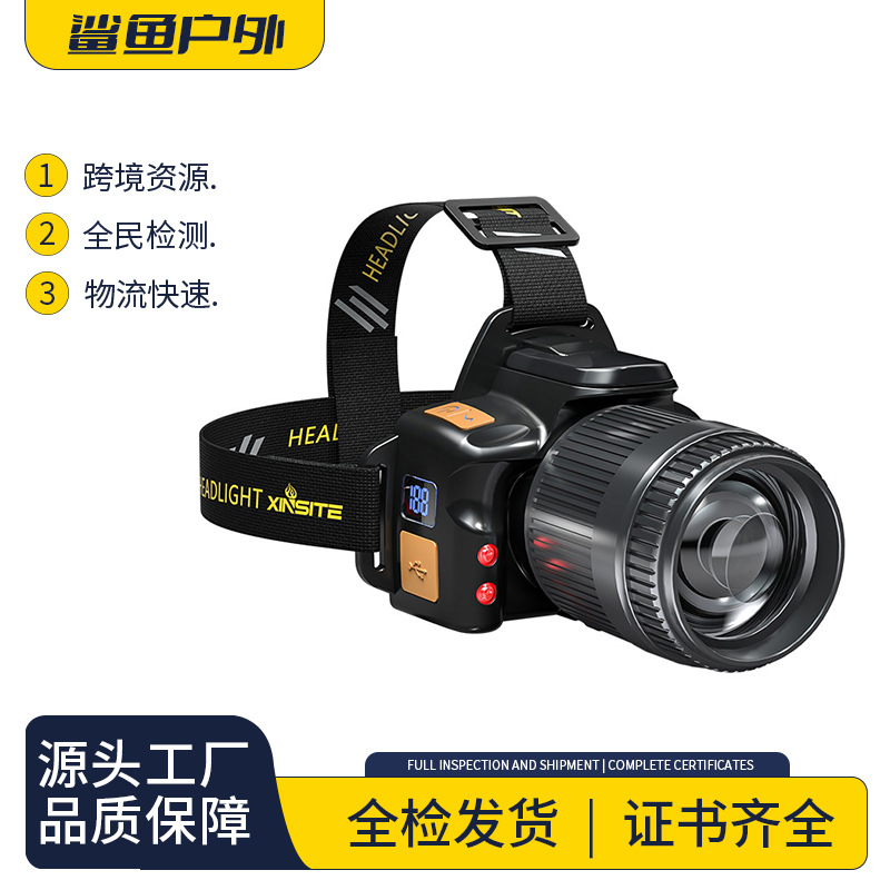 クロスボーダー起爆ヘッドライト屋外多機能ズーム可能長い航続夜釣りledライトポータブル防水作業ライト