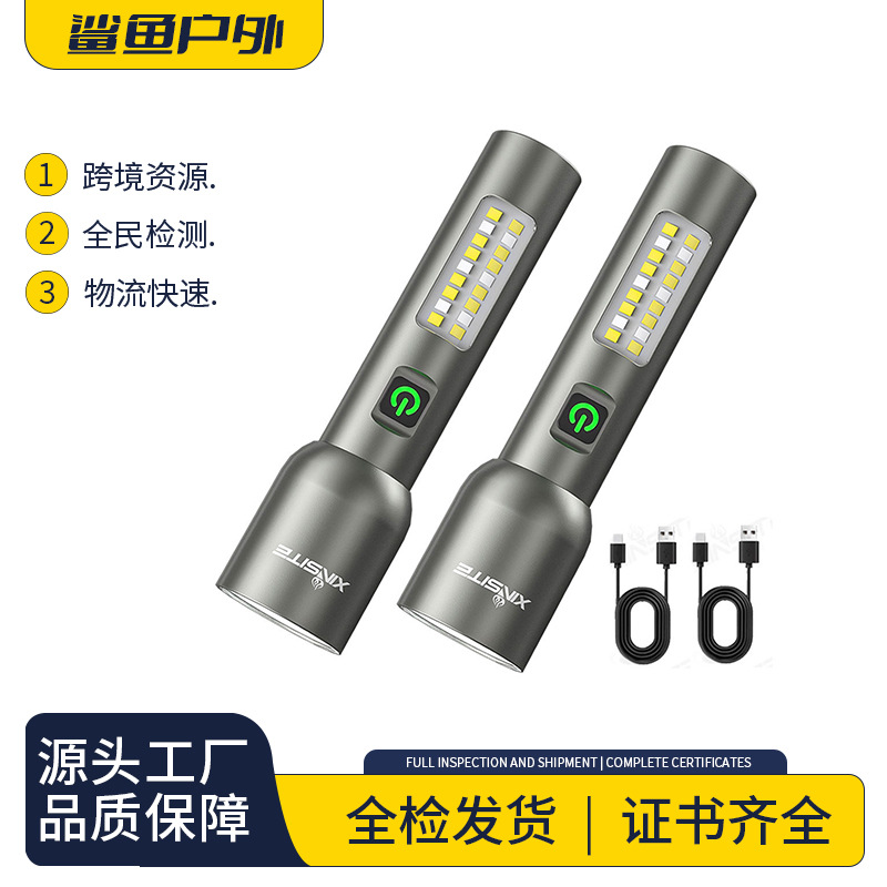 ディザトーン生中継人気強光照明懐中電灯携帯多機能遠射手電気帯側灯緊急充電宝