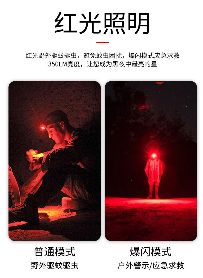 国境を越えた新型LEDヘッドライトType-C充電屋外で走ることは、赤い警告の強いヘッドライトを取り外すことができる