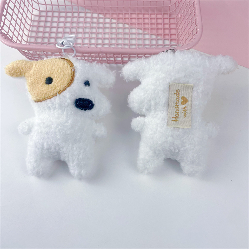 ぬいぐるみクリエイティブ人形、メガネをかけたブラッシュカラーのウサギのペンダント、パール付き子犬のぬいぐるみ、バッグキーホルダー、卸売