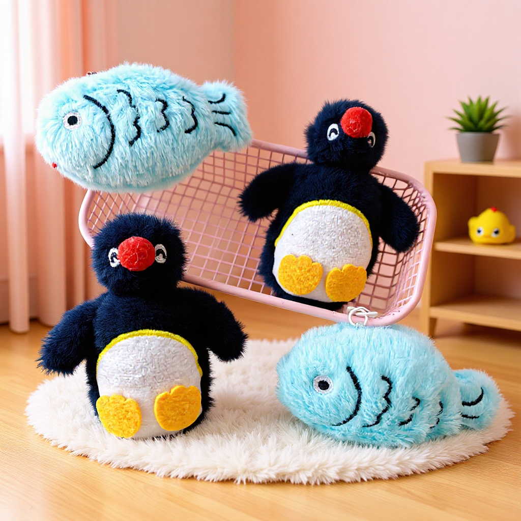 韓国系のかわいいアニメのぬいぐるみのペンギンのペンダントの小さい魚のリュックサックのキーホルダーの装飾の人形の百合の装飾の補助材料