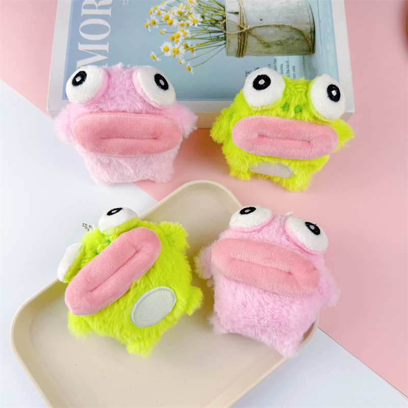 キュッキュピアス、かわいくて醜いカエル人形、面白いギフト、大きな口の野菜ぬいぐるみペンダントキーホルダー