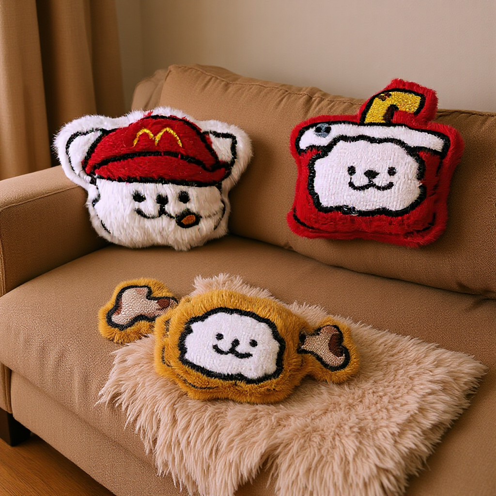 漫画のマクドナルドのぬいぐるみの線の子犬の人形はかばんを掛けて飾ります。
