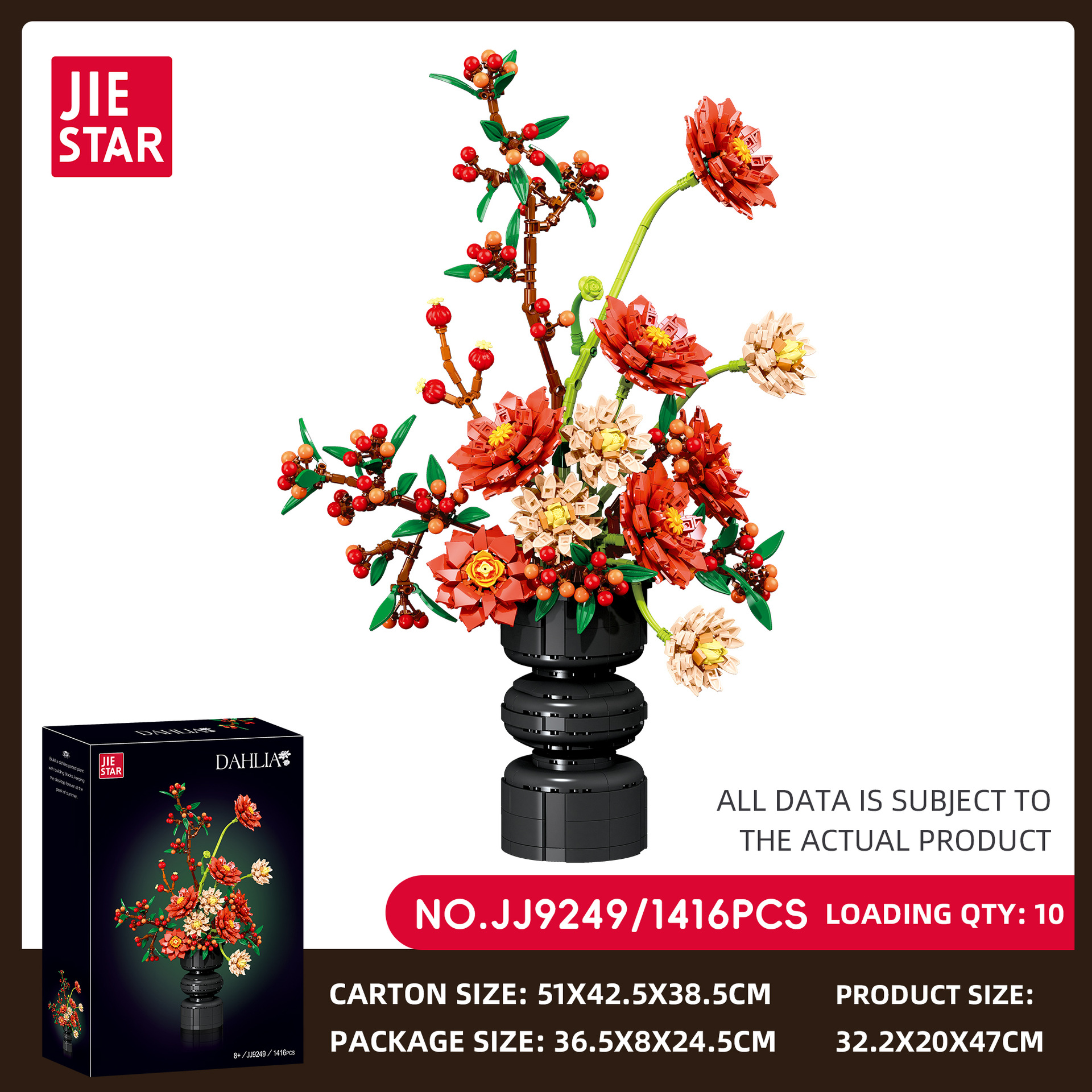 杰星9249 9258植物盆栽昙花玫瑰花束女孩礼物拼装积木玩具摆件跨