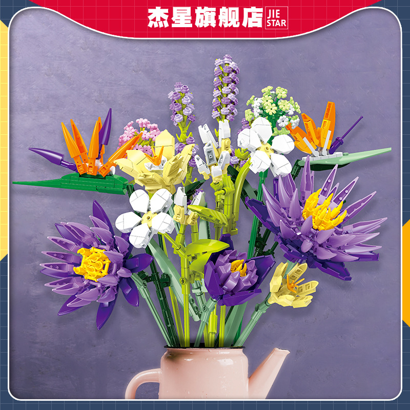 国境を越えた直接供給おもちゃメーカー卸売 Jie Xing JJ9046 家庭用家具組み立て DIY シミュレーションビルディングブロックブーケ