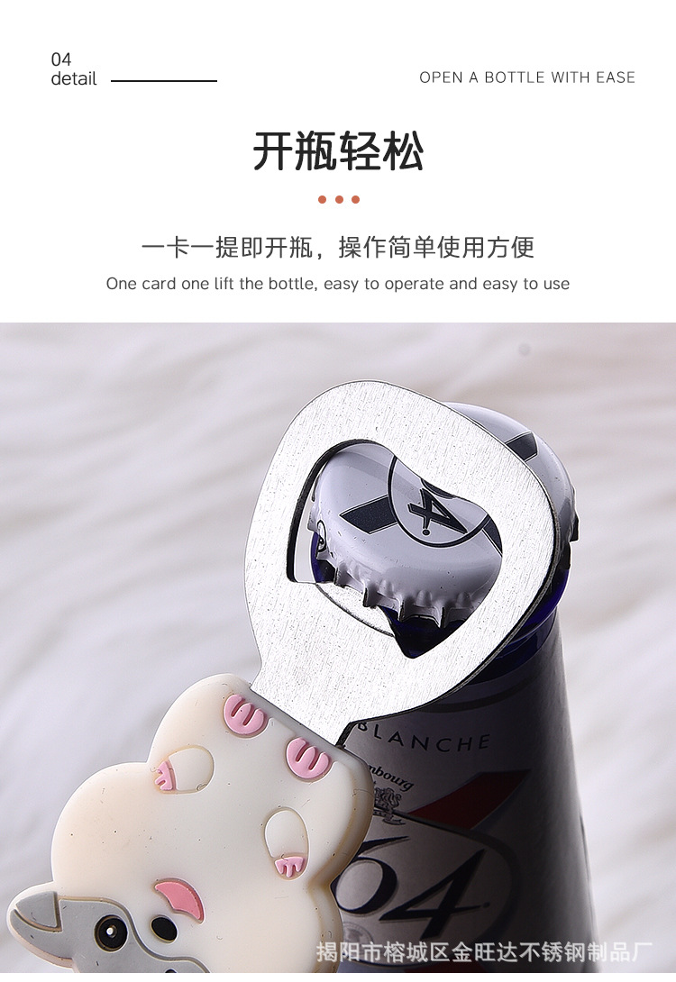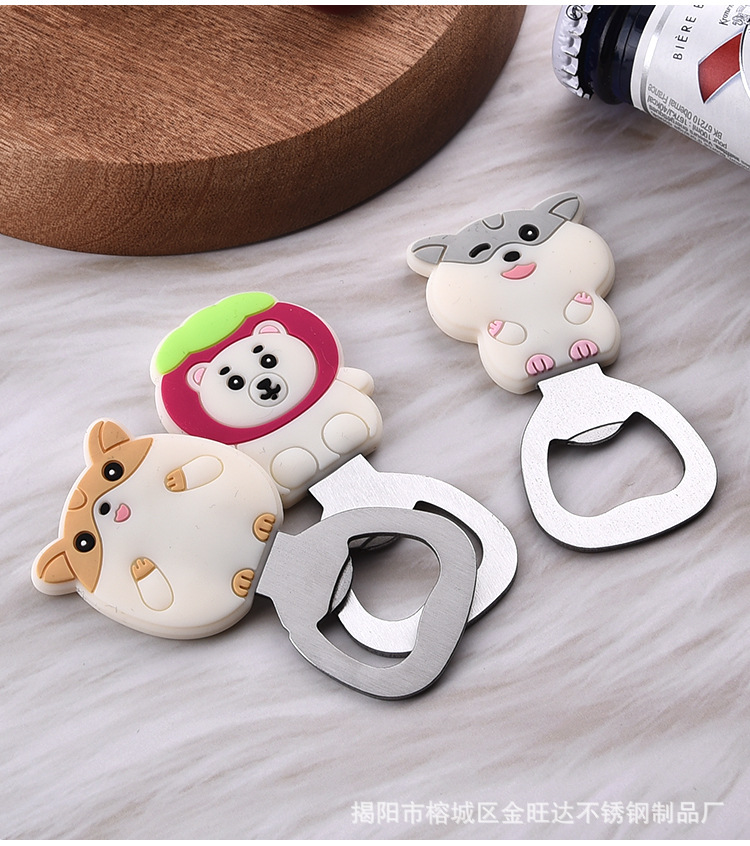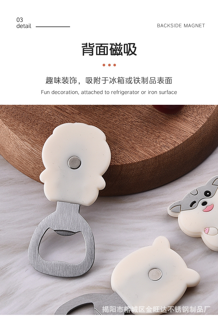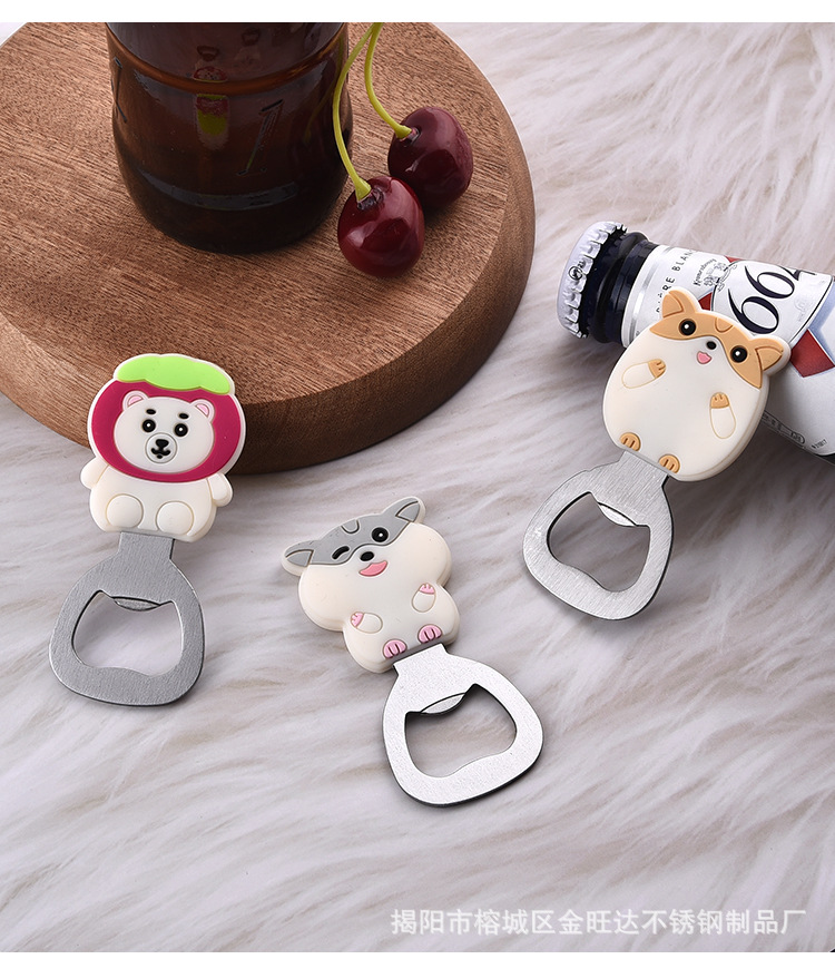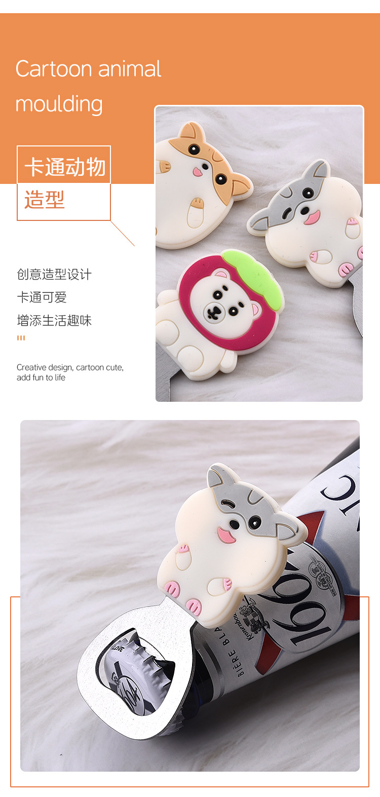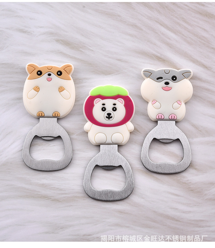 漫画の動物のビールの栓抜きの冷蔵庫はかわいいシリコンの鉄の石の磁気のアイデアを吸収します。