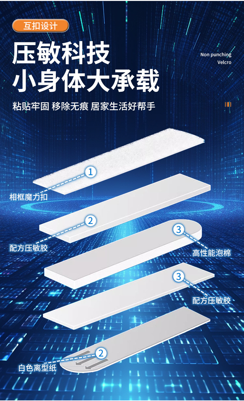 跨境挂画条 特粘魔力扣相框挂钩 魔术贴免钉无痕易拉胶双面固定贴