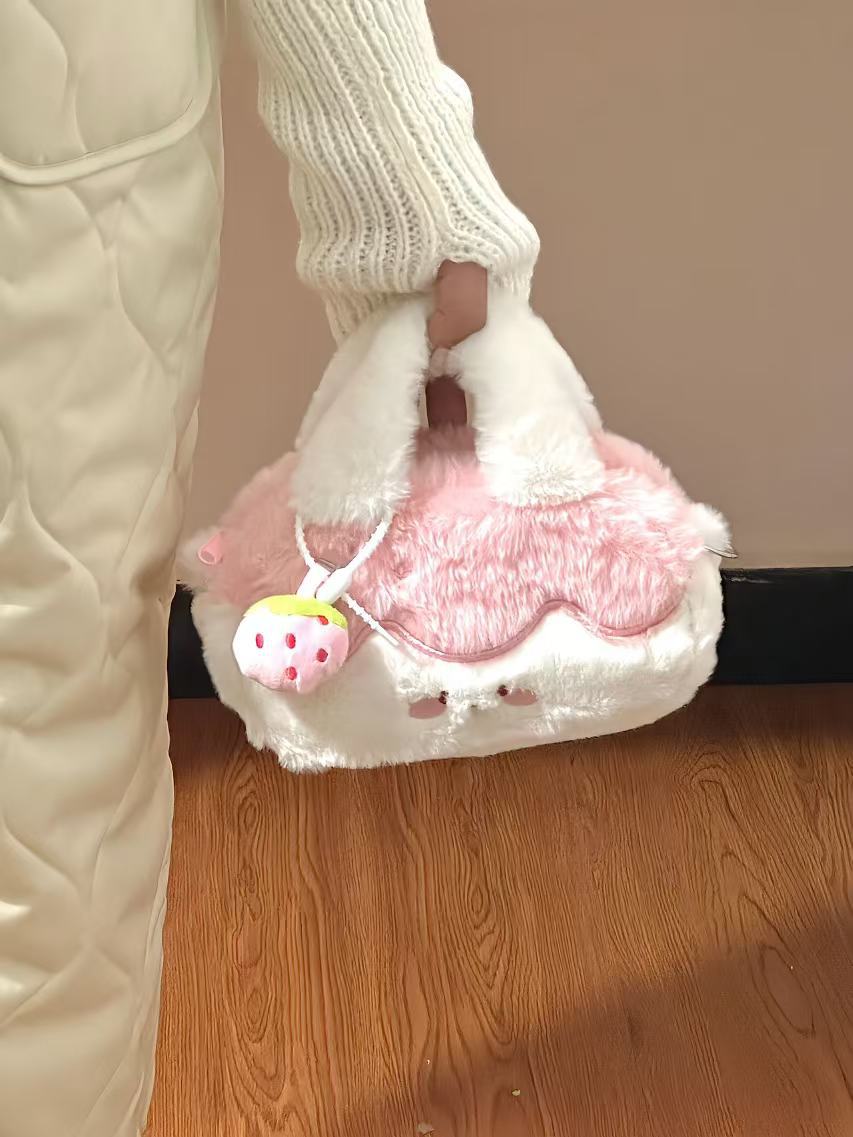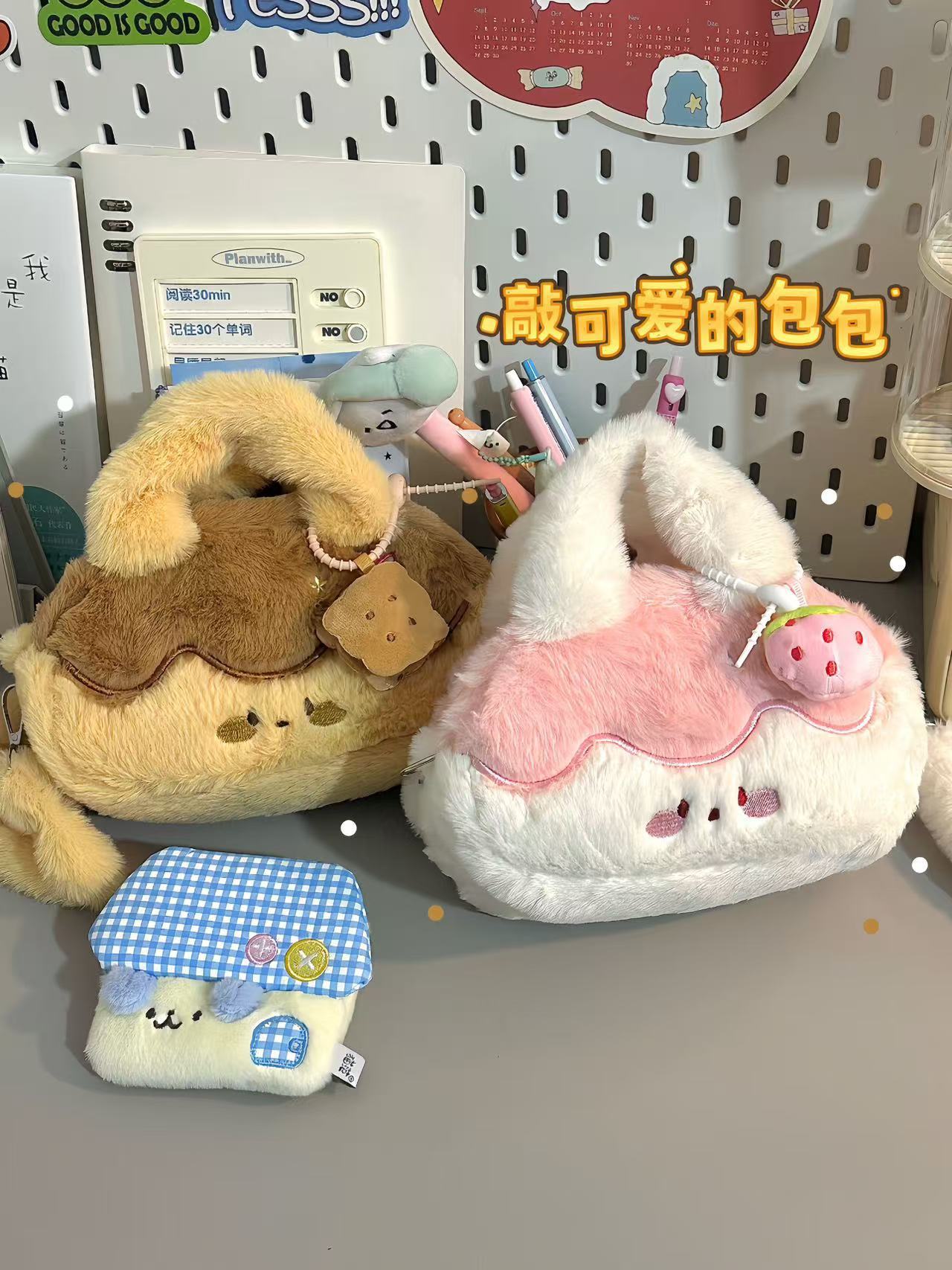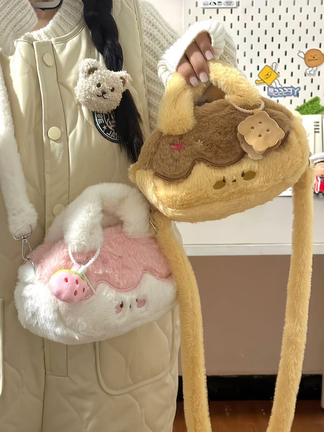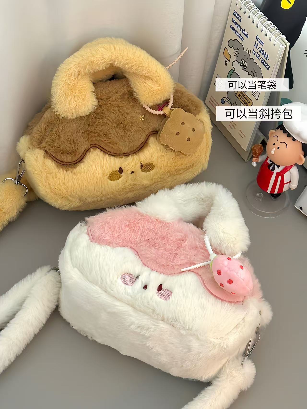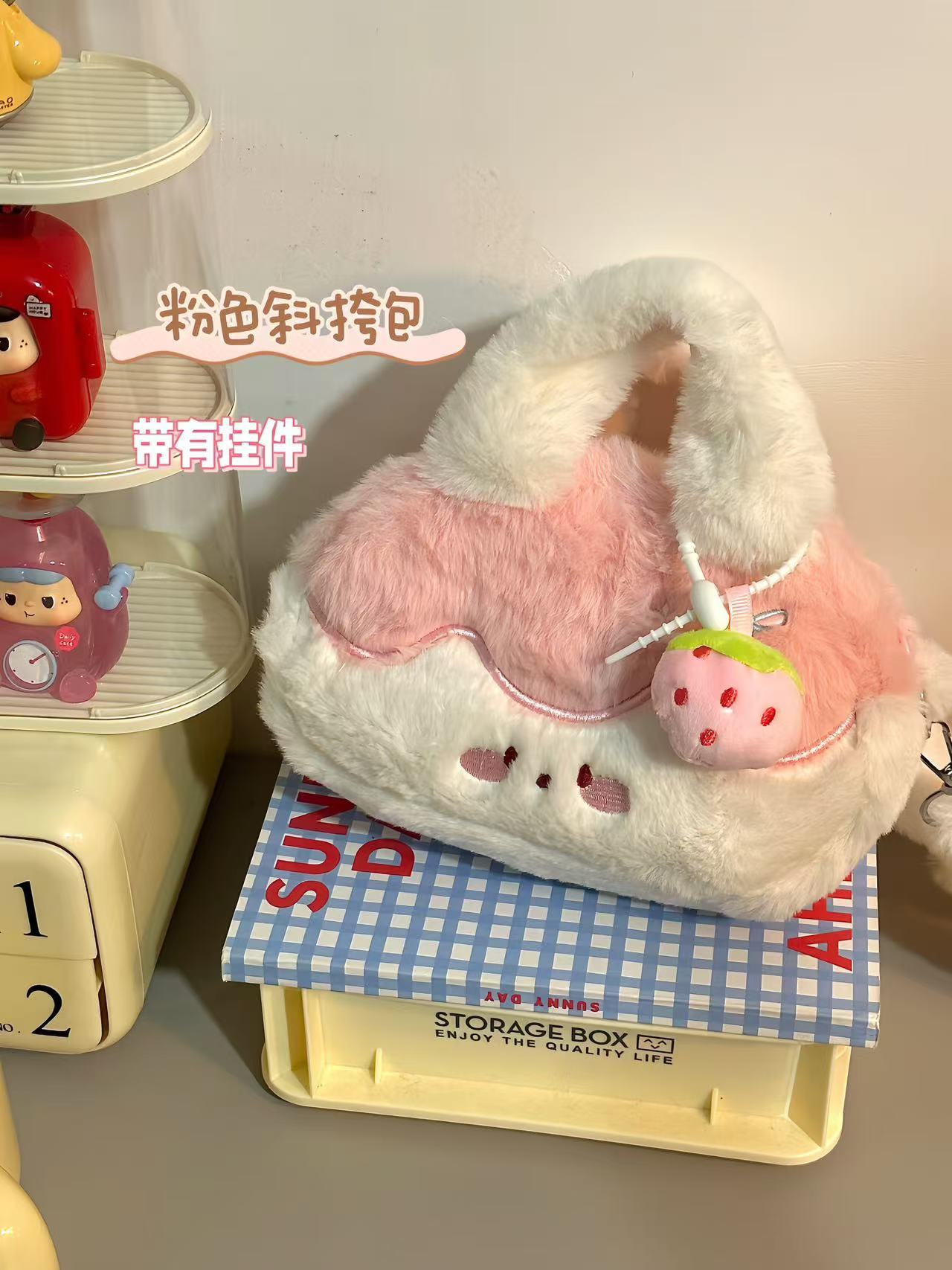 可爱甜妹背包甜心烘焙布丁毛绒单肩包可爱大容量草莓手提斜挎女包