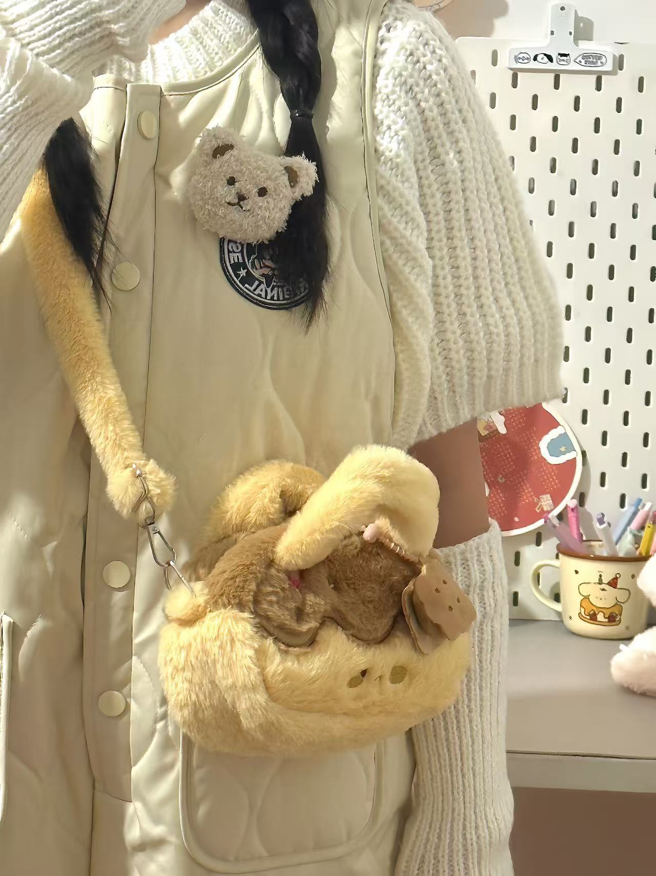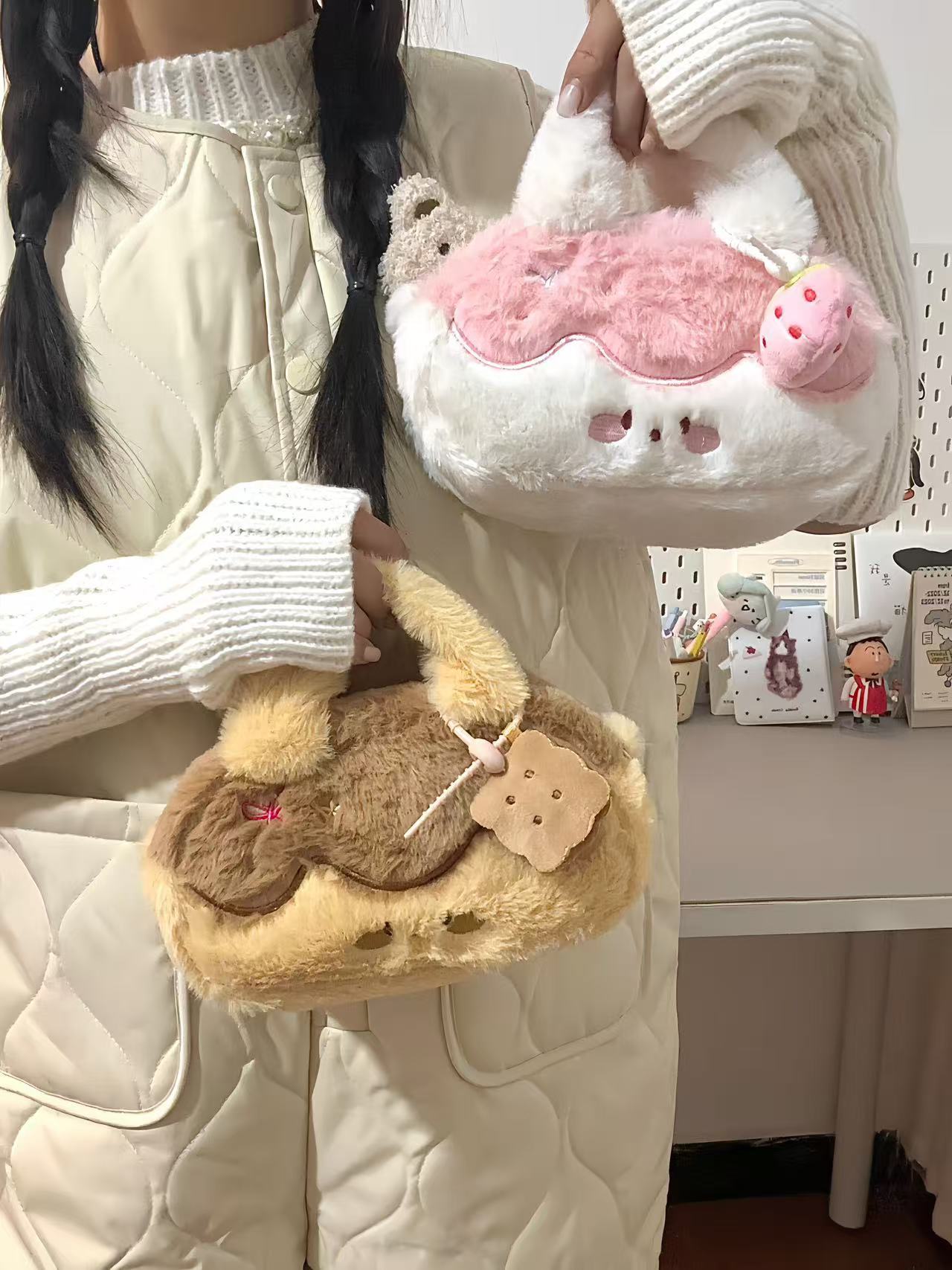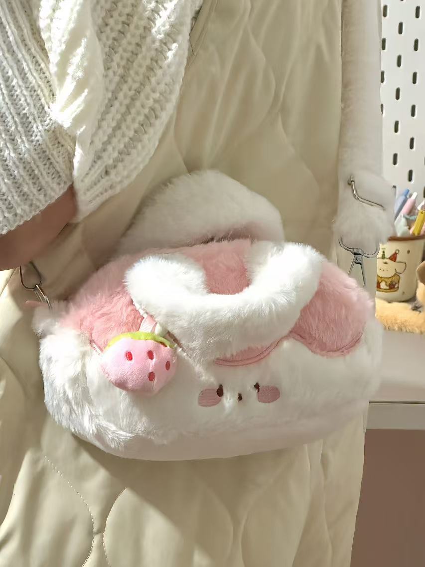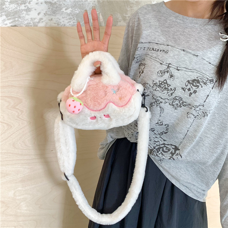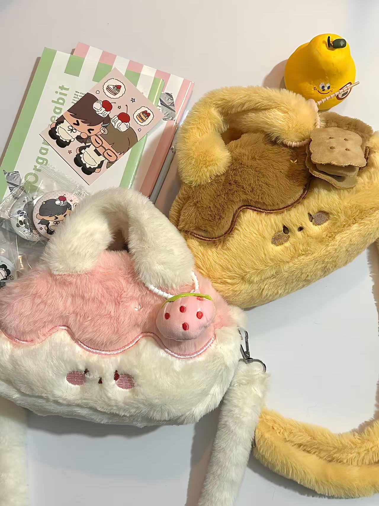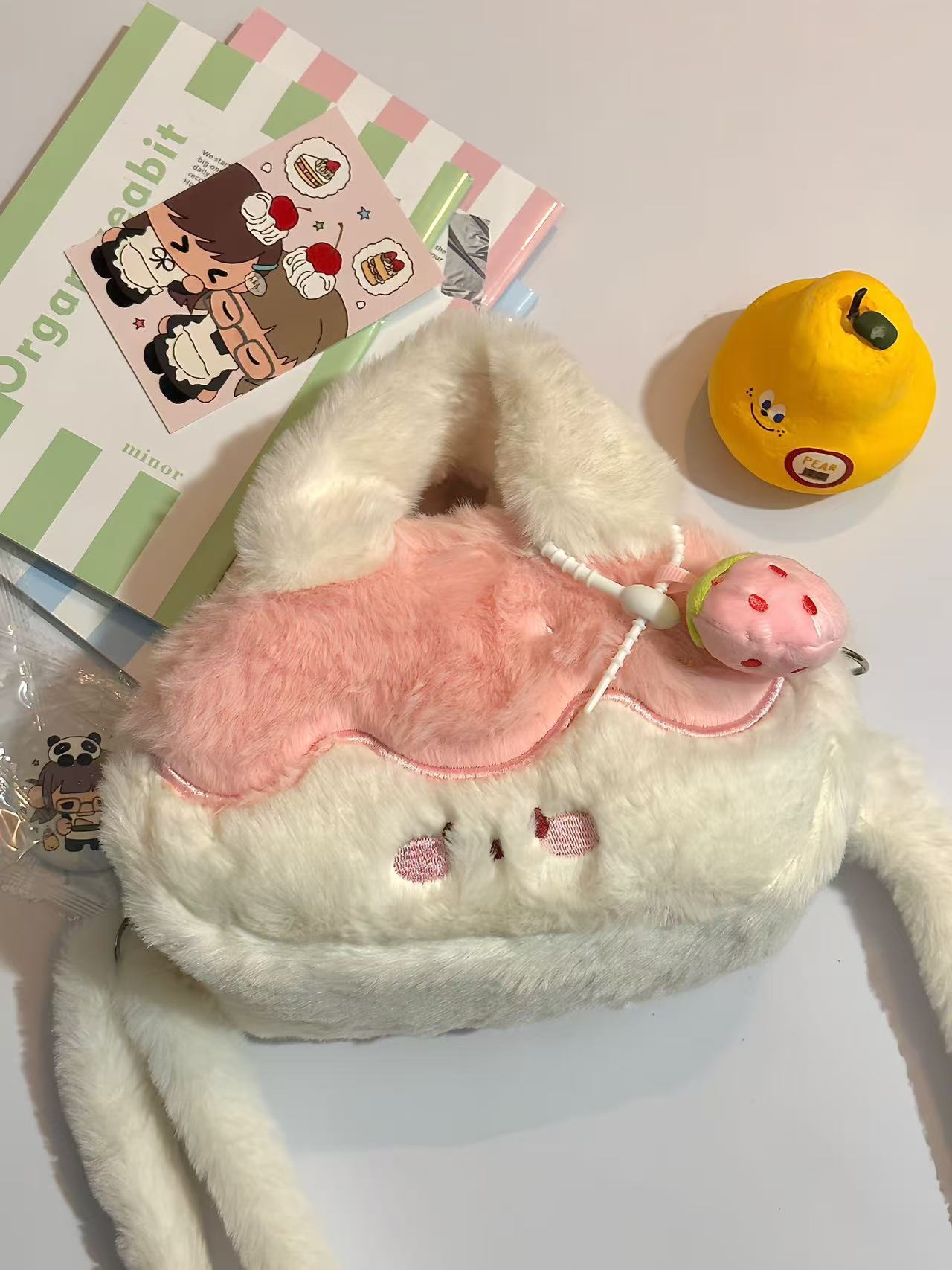 可爱甜妹背包甜心烘焙布丁毛绒单肩包可爱大容量草莓手提斜挎女包