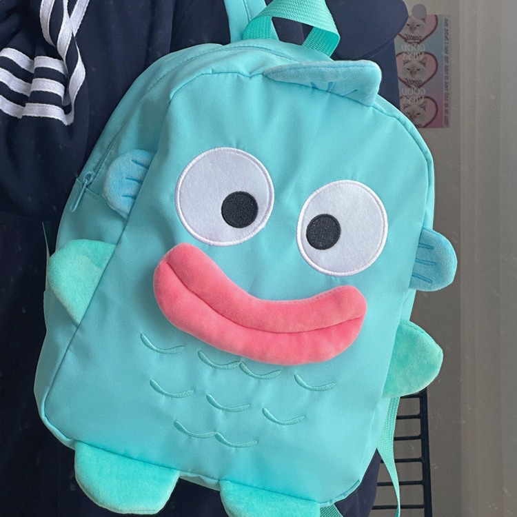 2023新型日本の醜い魚の漫画の大きい口の魚のランドセルの醜い萌えの青い大容量のリュックサックの男女の同金