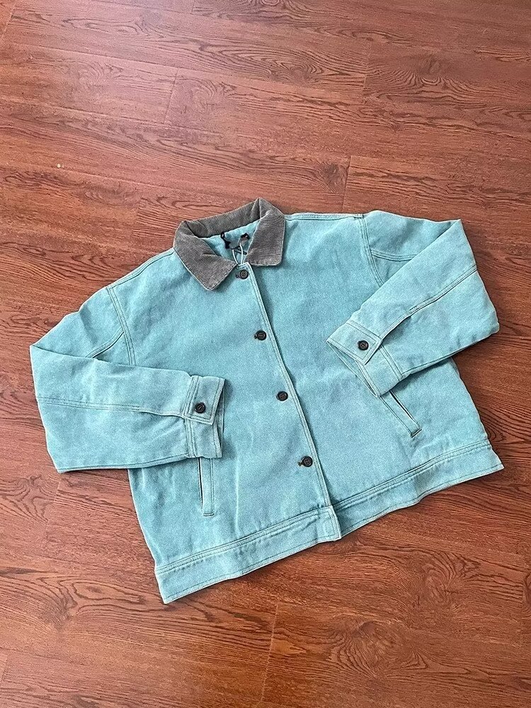 ヴィンテージレトロ重工水洗いショートカラー立襟工装ジャケットアメリカ古いステッチデザイン感コート男