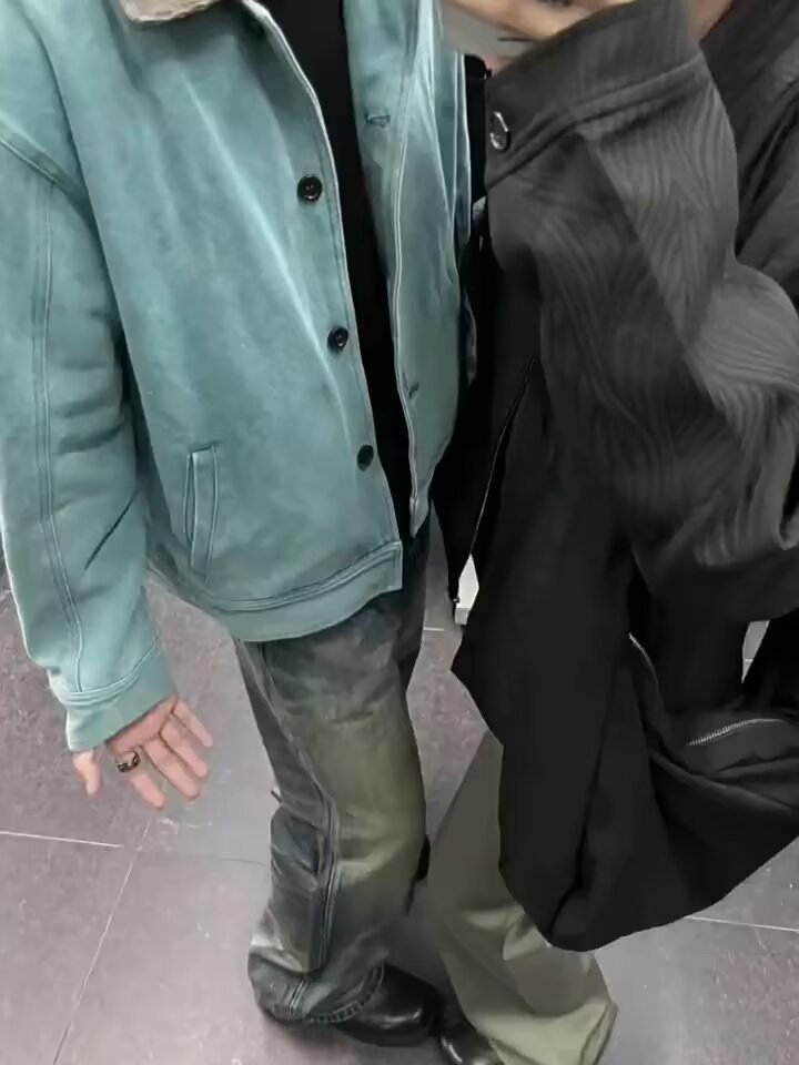 2025新型アメリカのレトロな水洗いは古い壊れたリング感のカップルジャケットを作ります。