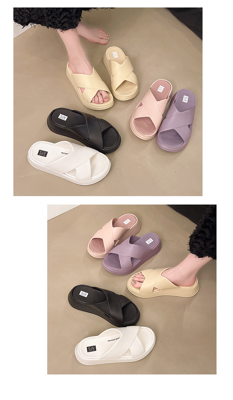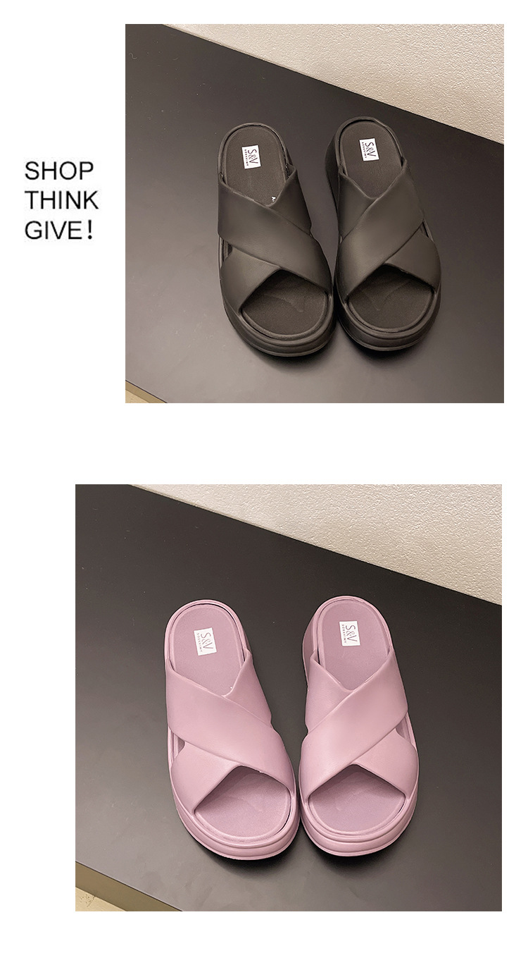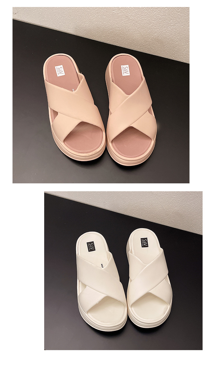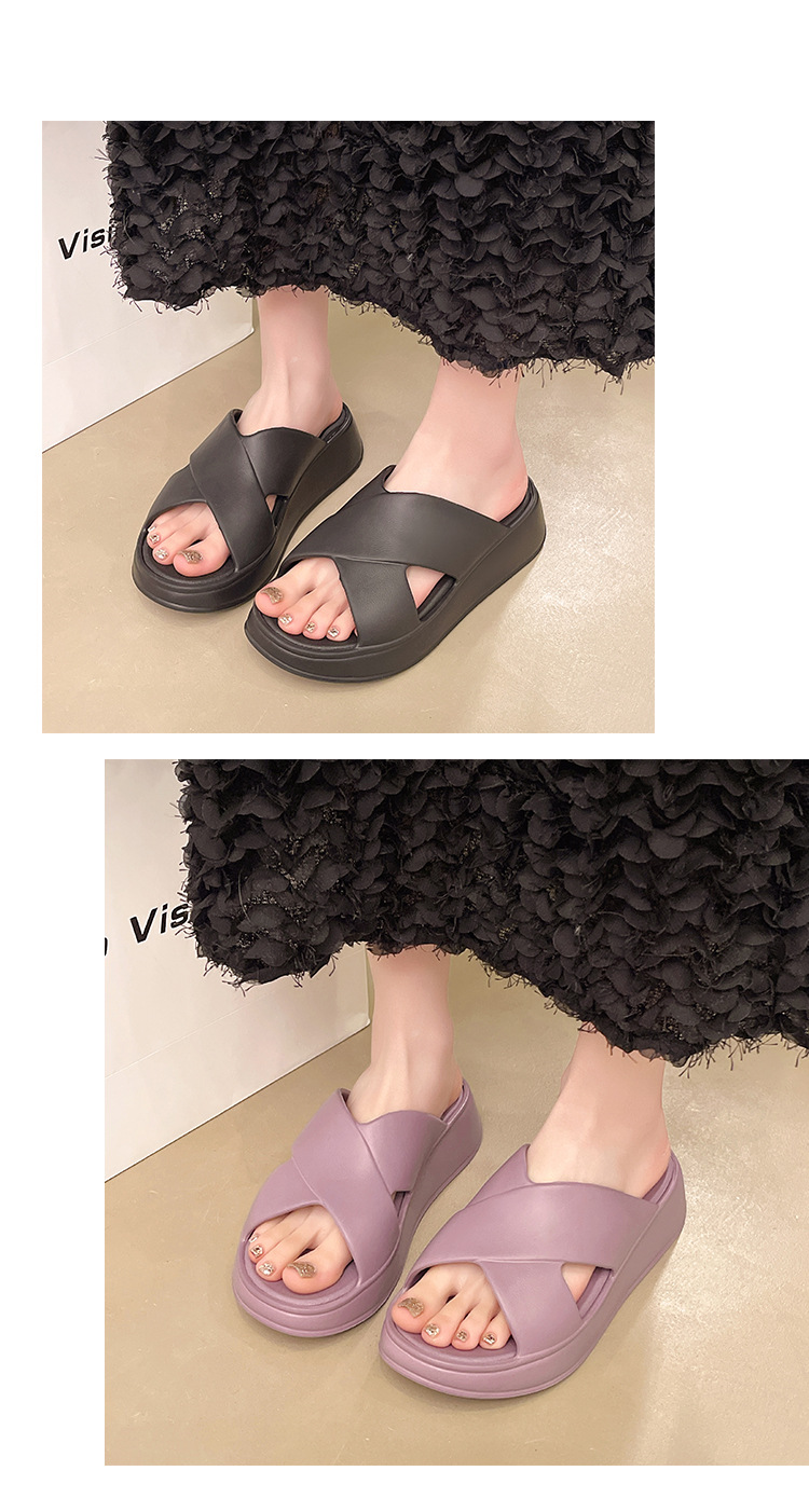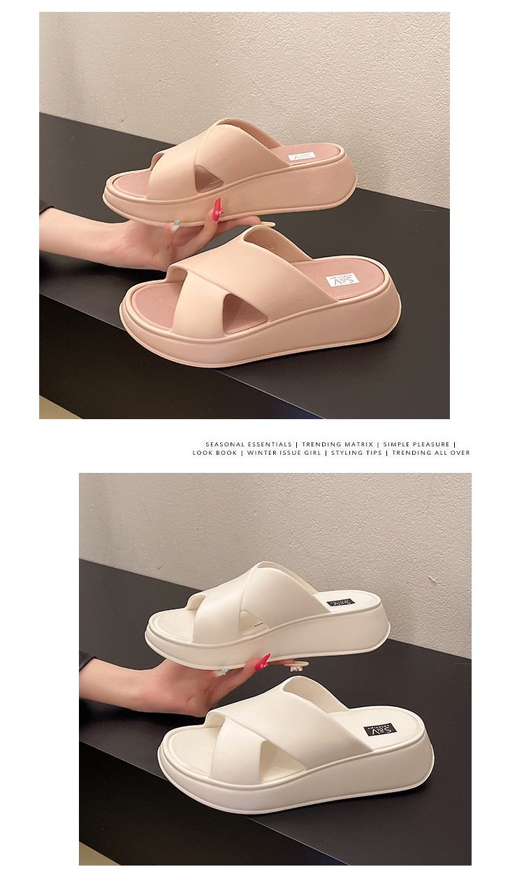 女性用クロスボーダーウェッジビーチサンダル 2025 夏プラットフォームヒール厚底カジュアルアウターウェアソフトソールビーチサンダル