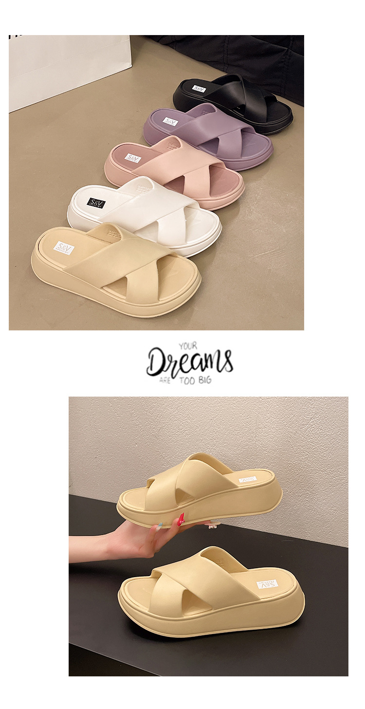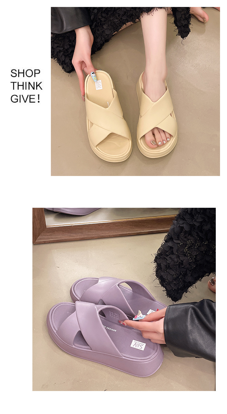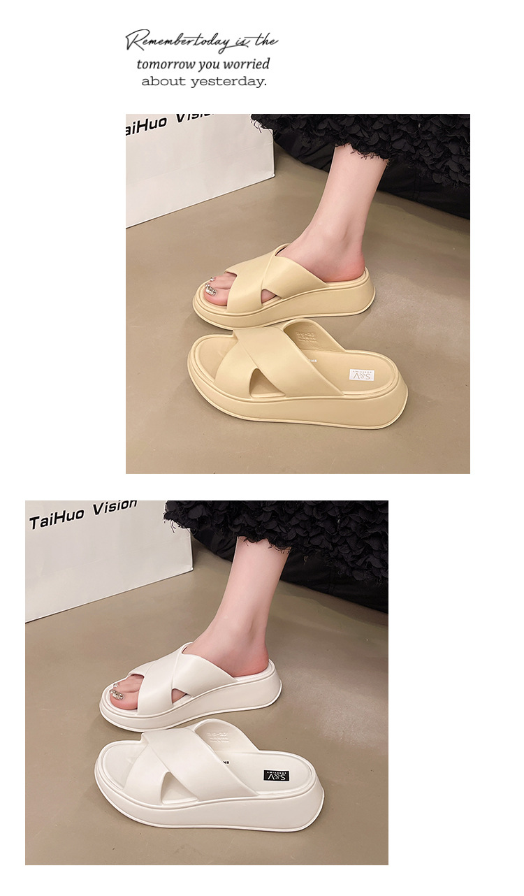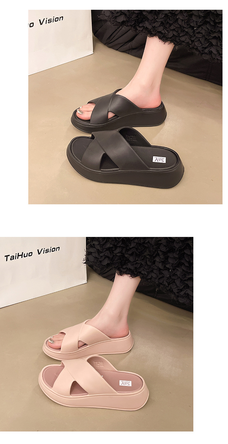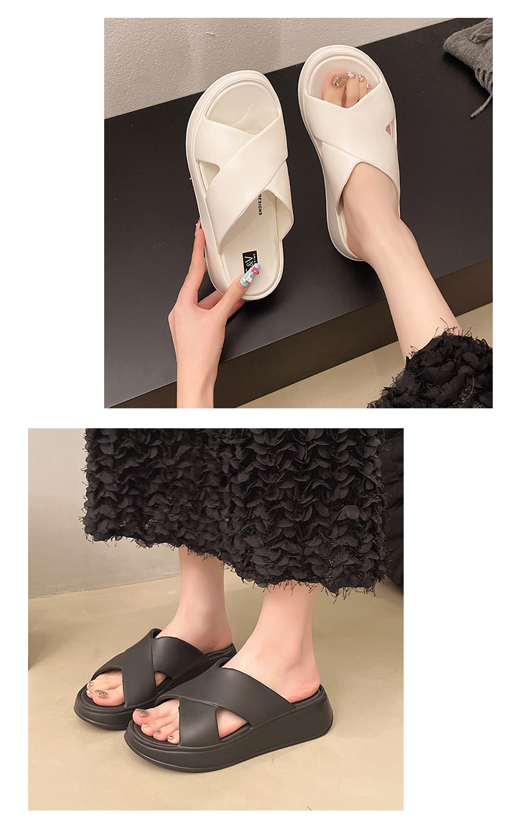 女性用クロスボーダーウェッジビーチサンダル 2025 夏プラットフォームヒール厚底カジュアルアウターウェアソフトソールビーチサンダル