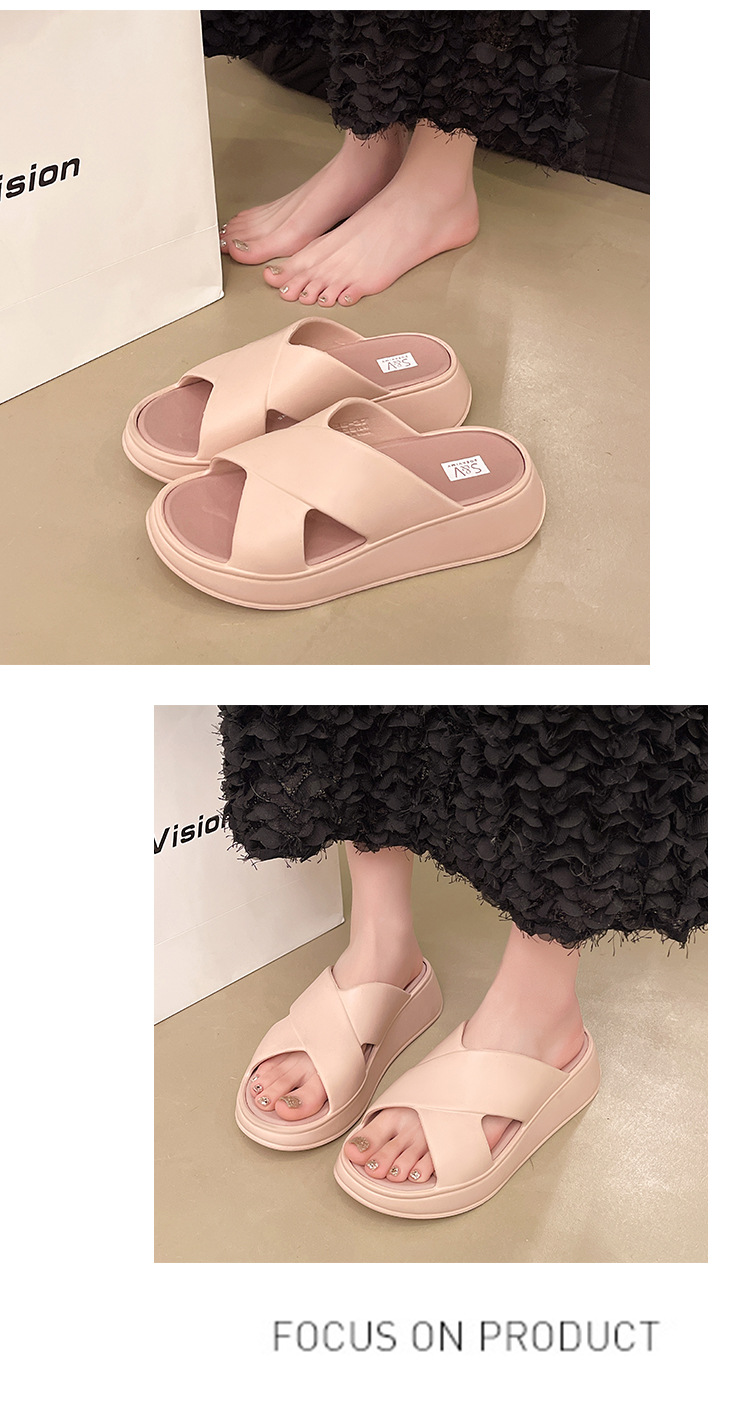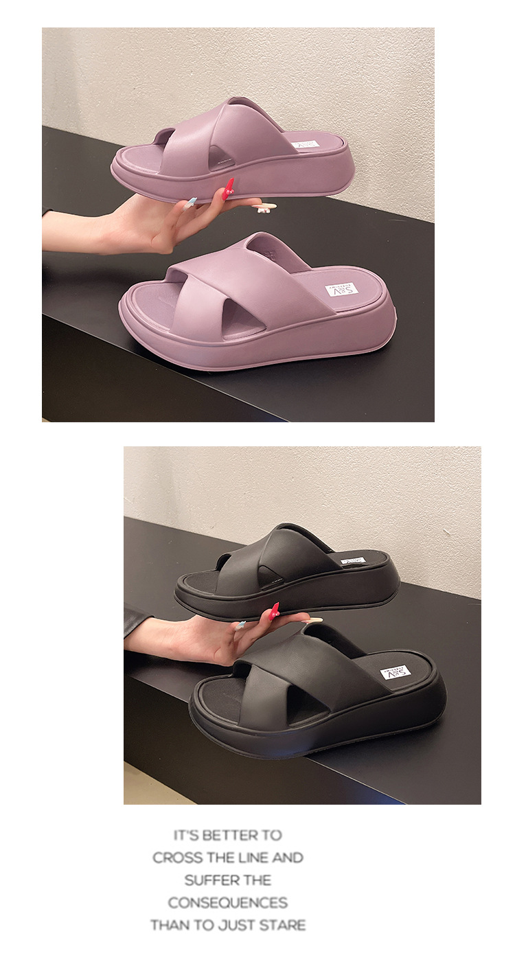 ハイヒールのスリッパの女性は夏の厚い底の新型の家の坂と一字型のpvc浴室の滑り止めの松餅の冷たいスリッパを着ます。