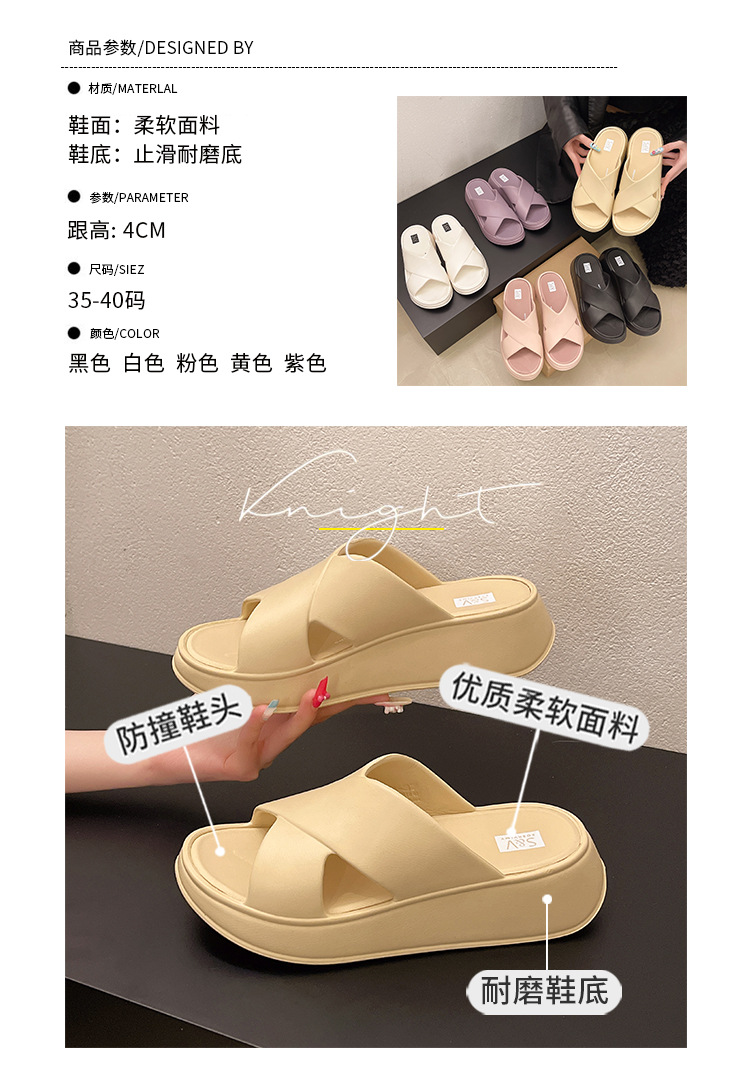 厚い底のスリッパの女性の夏の新型の外はファッションの坂と家の浴室の防水の滑り止めのハイヒールの1字のスリッパを着ます。