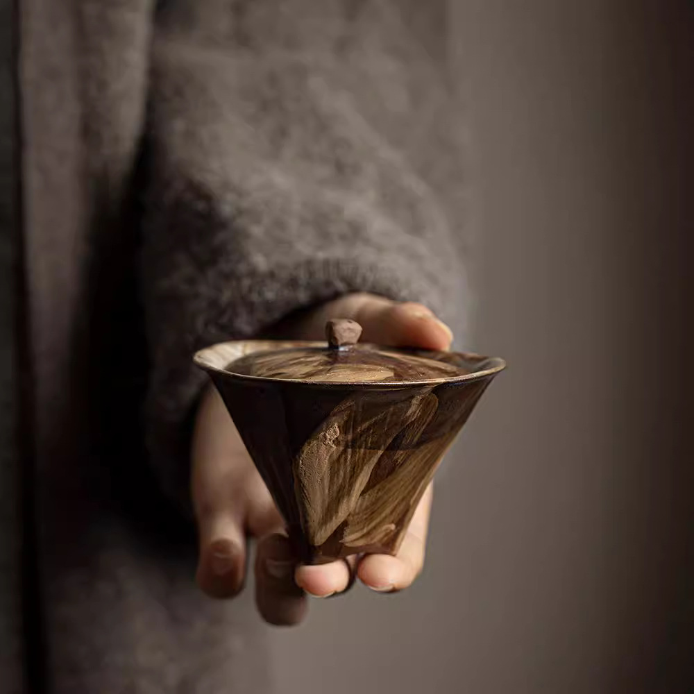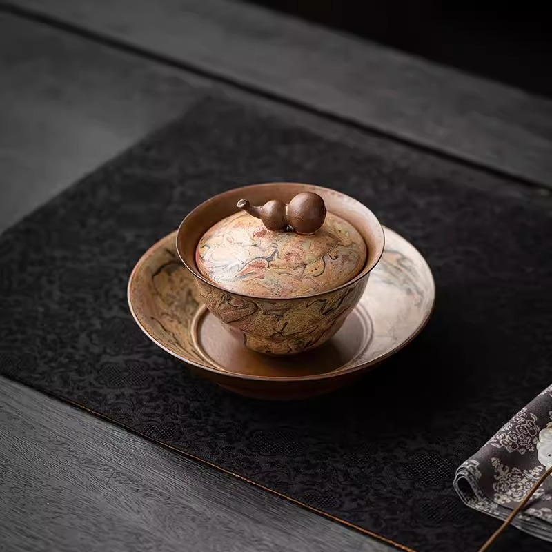 柴焼岩鉱三才蓋碗岩鉱茶杯景徳鎮蓋杯創意工夫茶具主泡茶器