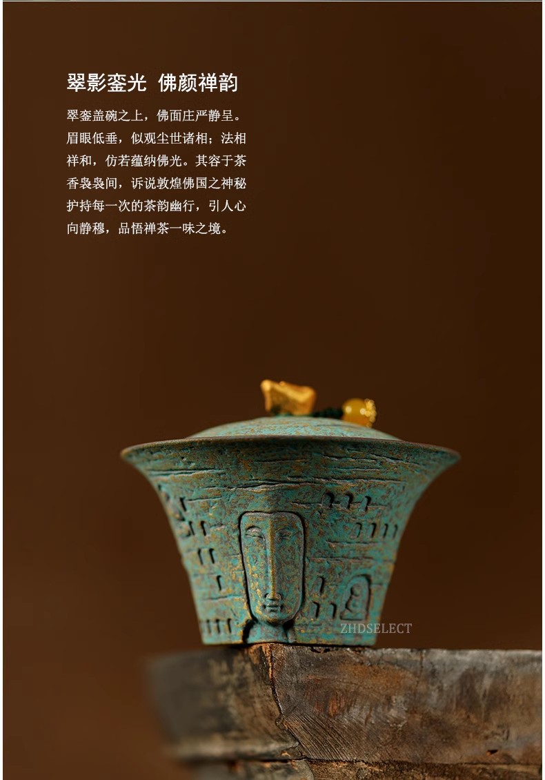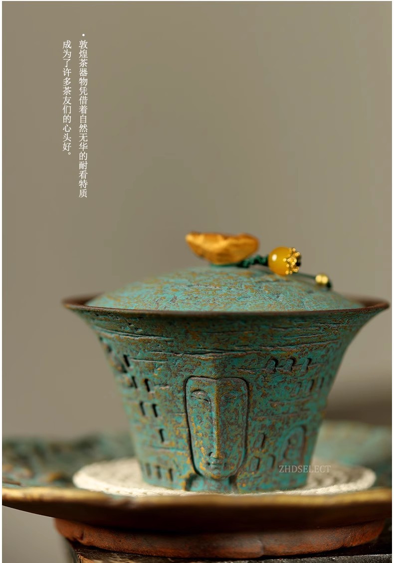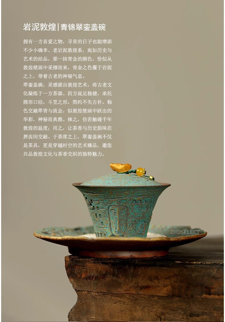 国風敦煌純手描き描金蓋碗復古手掴み碗高級家庭用陶磁器開片工夫茶泡器