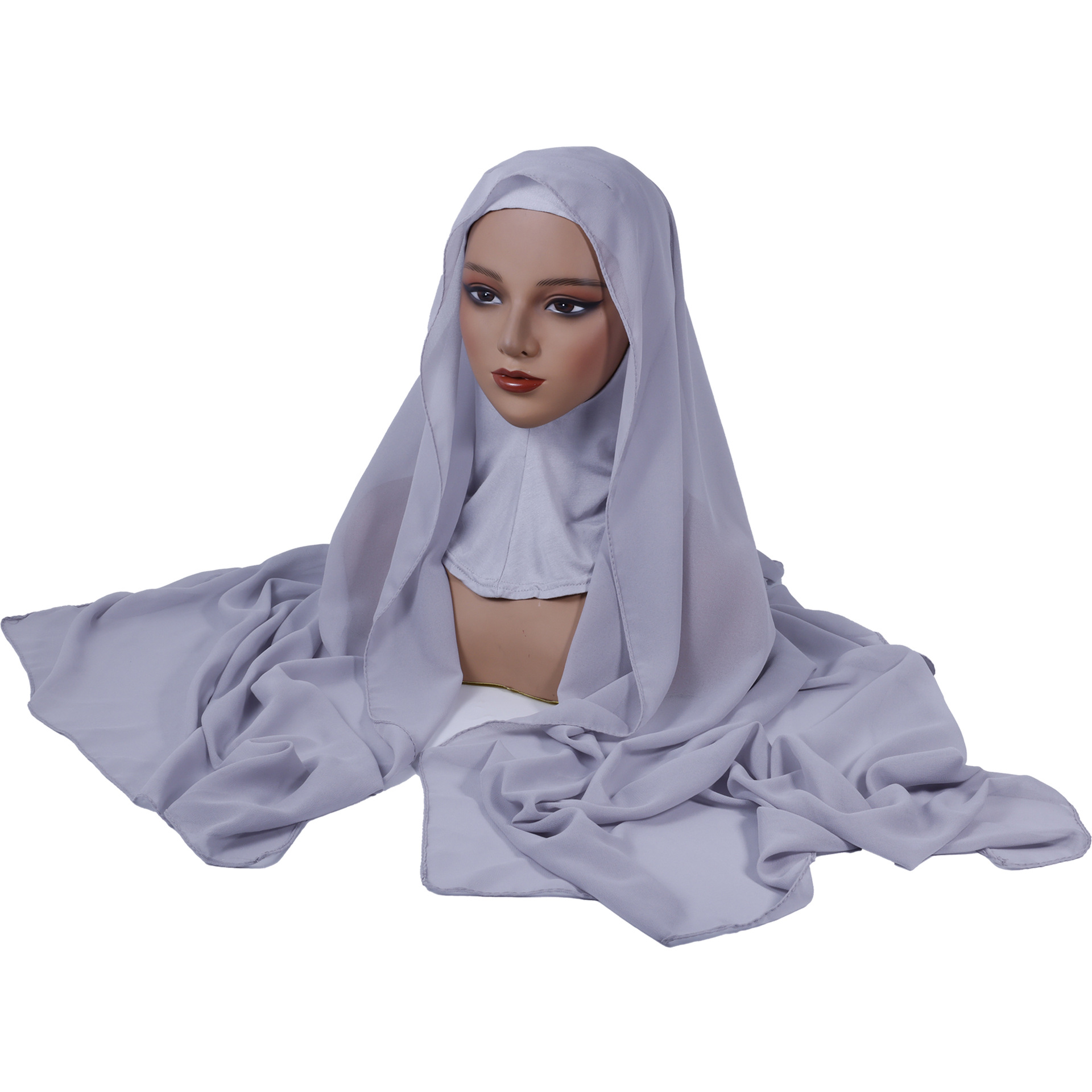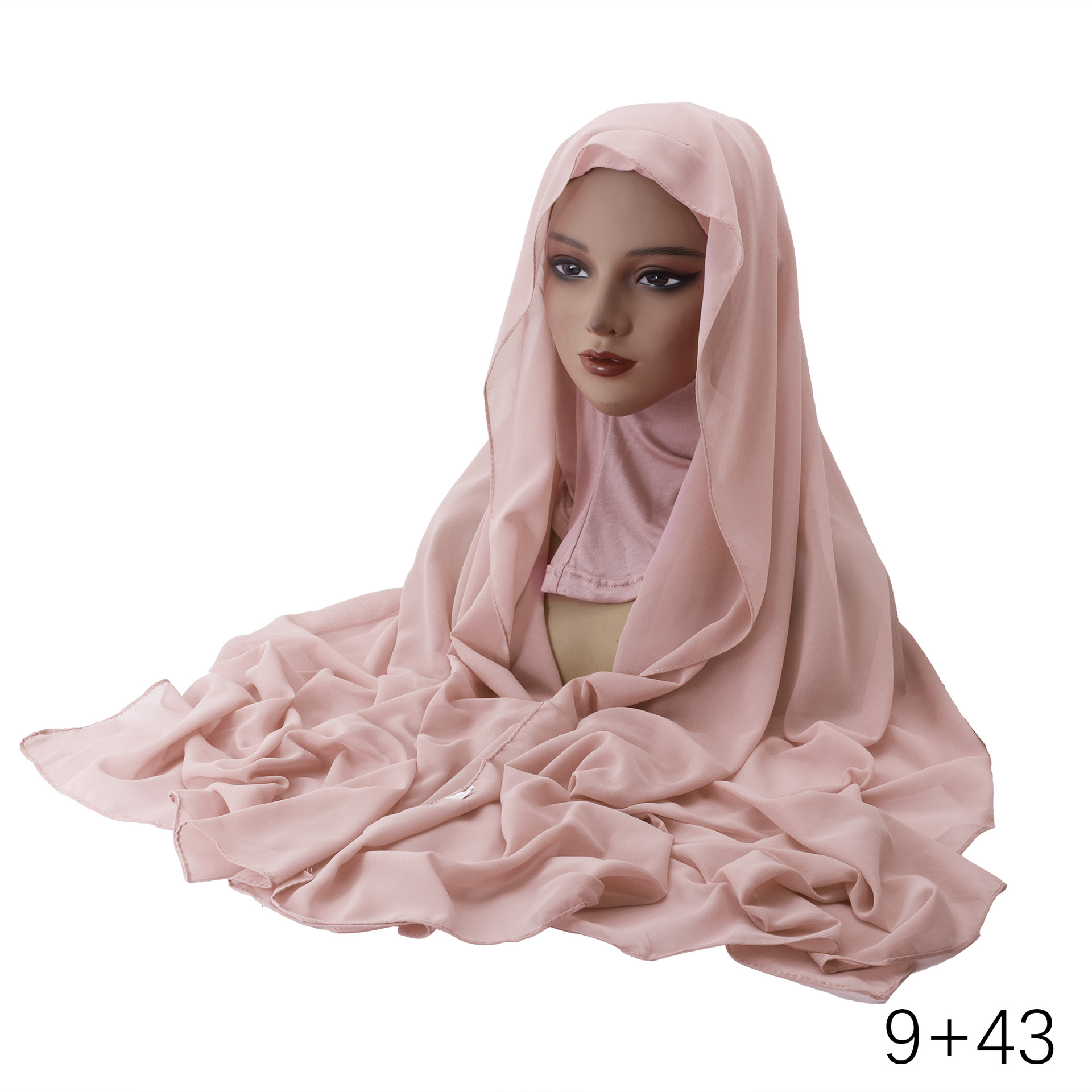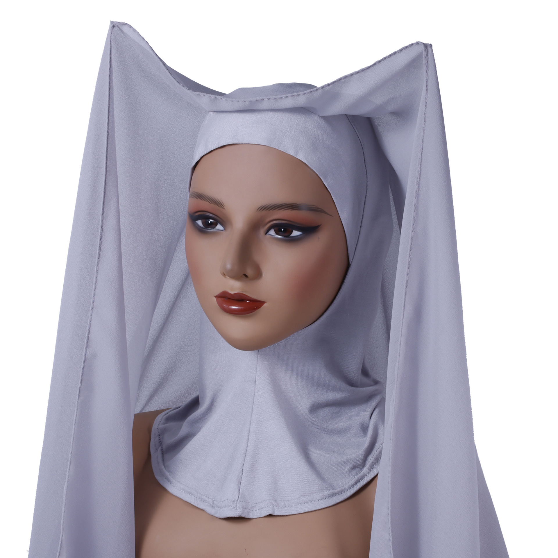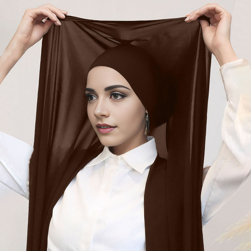 新作シフォンヘッドスカーフとベースキャップのセット、単色パールシフォンロングスカーフとベースキャップの一体型セット