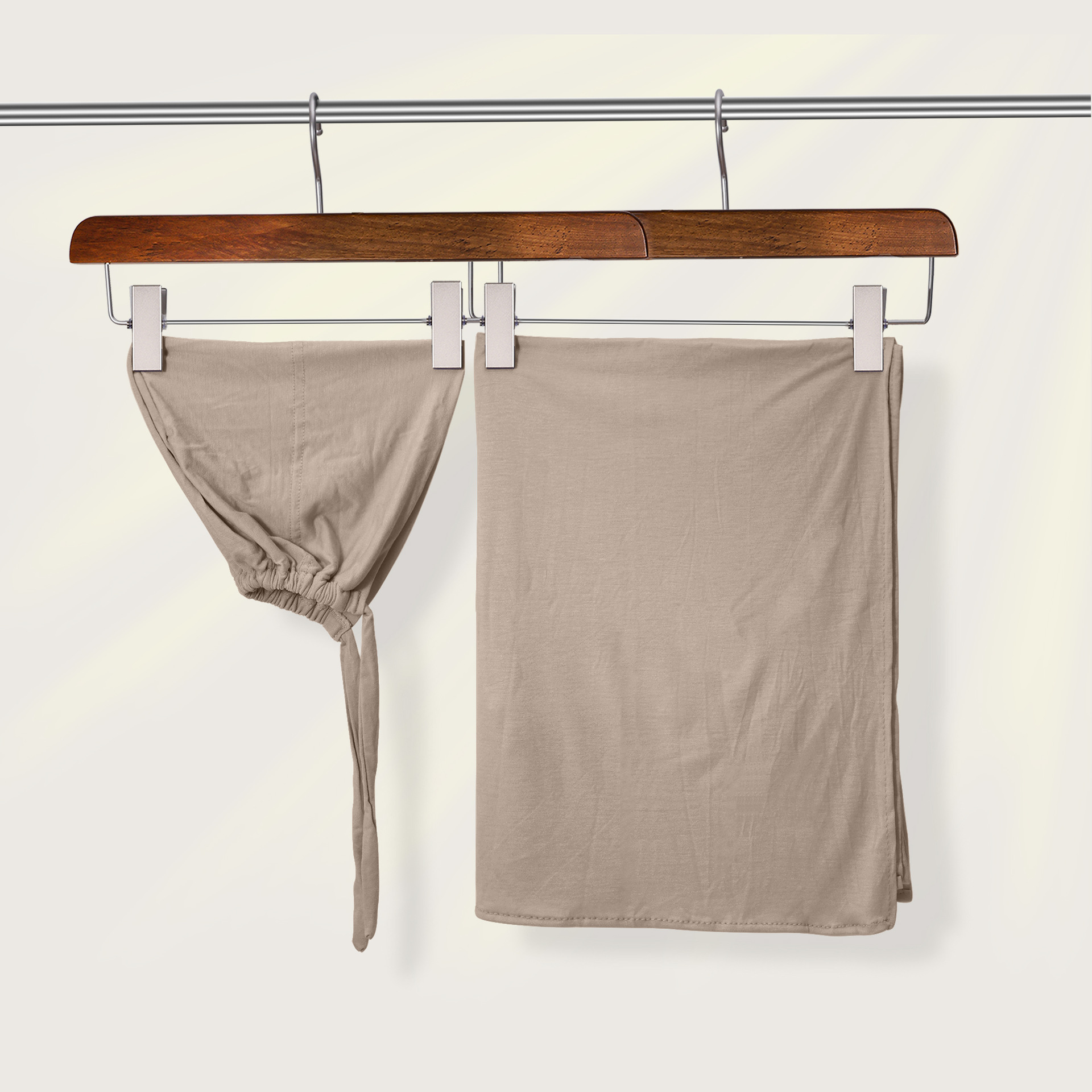 【継ぎ合わせなし・ストラップ付きキャップ+ジャージ】モダールコットンボトムキャップ・ジャージ・ターバンの継ぎ合わせなし2点セット