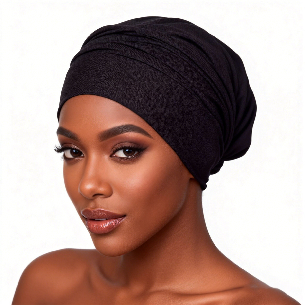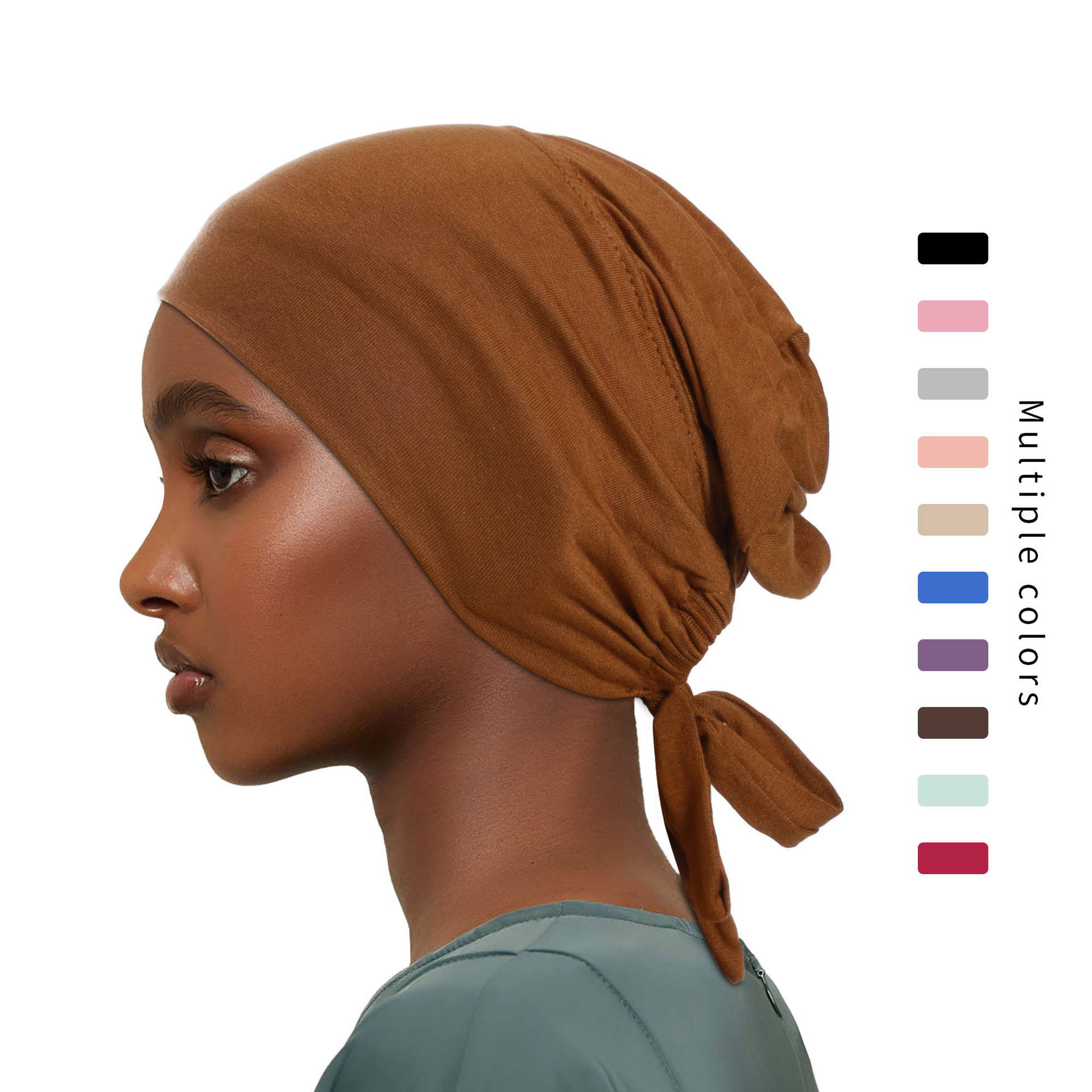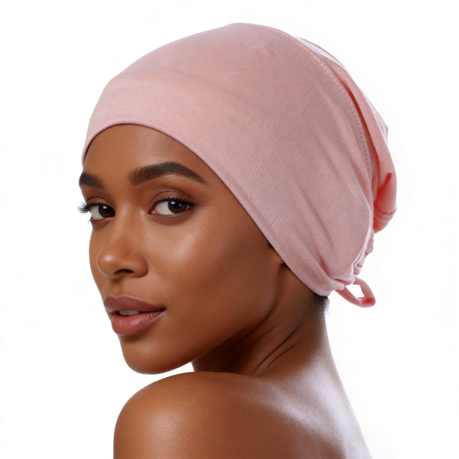 【高品質純粋シルク光沢綿】調節可能な隠しヘアターバンキャップ、伸縮性のある紐付きベースキャップ、ヘアカバー