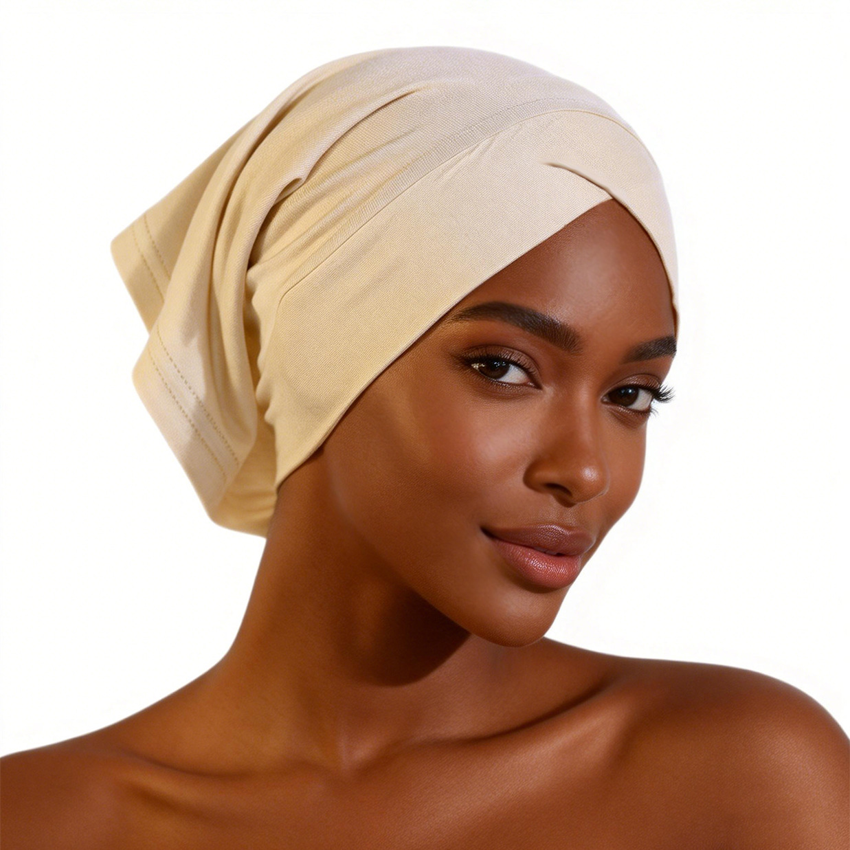 女士盖头头巾外贸头套双层圆边头巾打底帽高弹力纱巾水晶麻