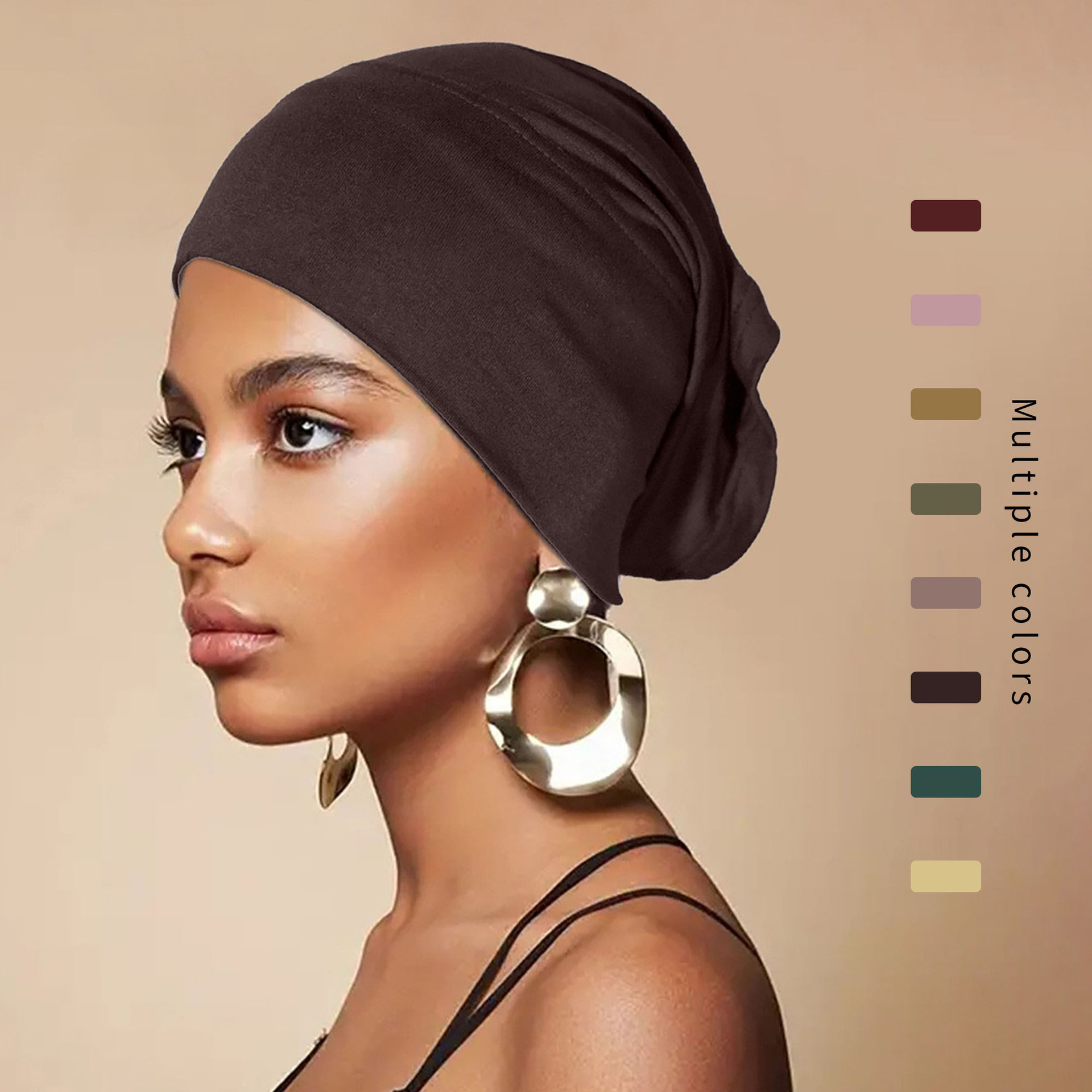 新款雪纺头巾褶皱抽绳帽套装单色珍珠雪纺头巾褶皱打底帽组合