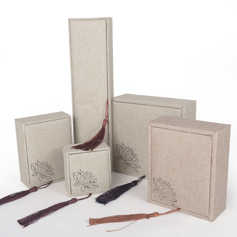 工場直販リネンタッセル仏珠収納レトロブレスレットブレスレットボックス包装ジュエリーボックスタッセル木箱